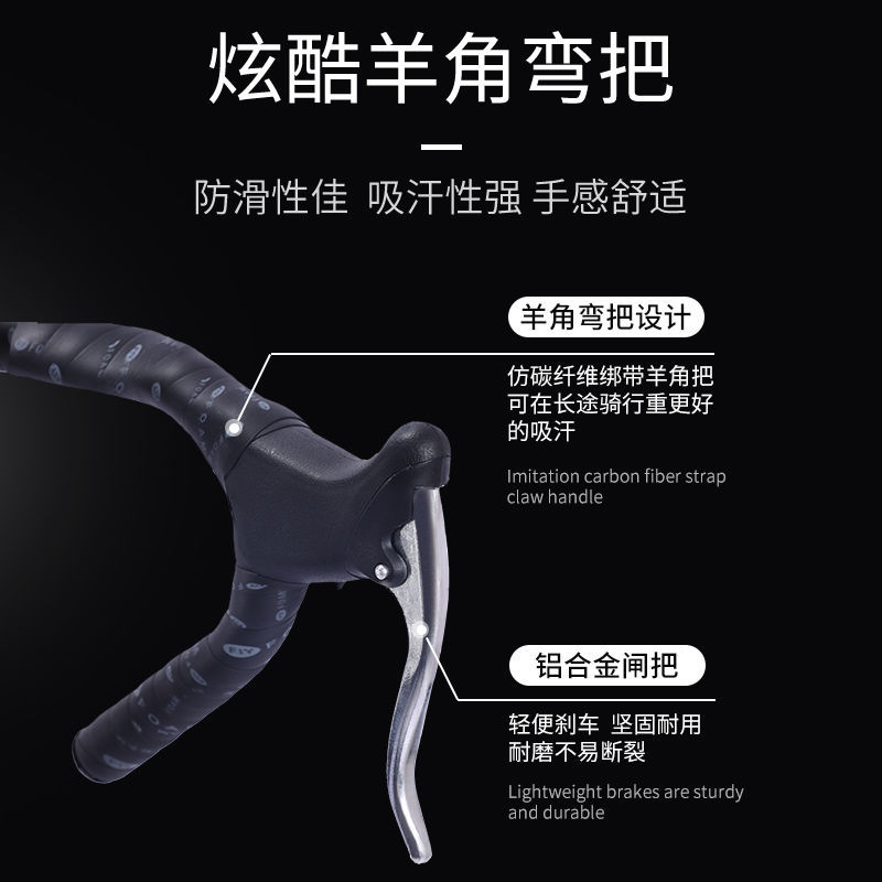 Road Racing Dead Flying Variable Speed Bicycle Men's Solid Tire Curved Handle Muscle Live Flying Bicycle Double Disc Brake Student Female
