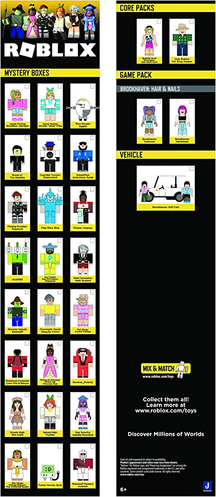 The Roblox Celebrity Collection – Series 9 Mystery Figure 6-Pack is the ultimate addition to any Roblox fan’s collection. This pack includes six mystery figures, each featuring a unique design inspired by popular Roblox characters. With this pack, you’ll receive six exclusive virtual items that can be redeemed in the Roblox game. These items are only available with this pack, making it a must-have for any serious Roblox player. The mystery figures are packaged in blind boxes, adding an element of surprise and excitement to the unboxing experience. Collect all six figures to complete your set and unlock all the exclusive virtual items. This pack is perfect for fans of all ages and is sure to provide hours of fun and entertainment.