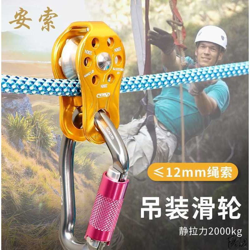 Rock climbing lifter hanging fixed outdoor aluminum alloy single pulley installation cable safety device pulley pulley assembly cross climbing