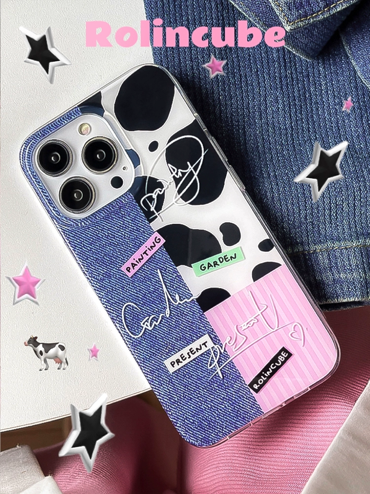 Rolincube original Apple 15promax mobile phone case personalized iphone16pro denim stitching 16 new style 15pro suitable for 15 double-layer printing 14pro creative 16promax anti-fall