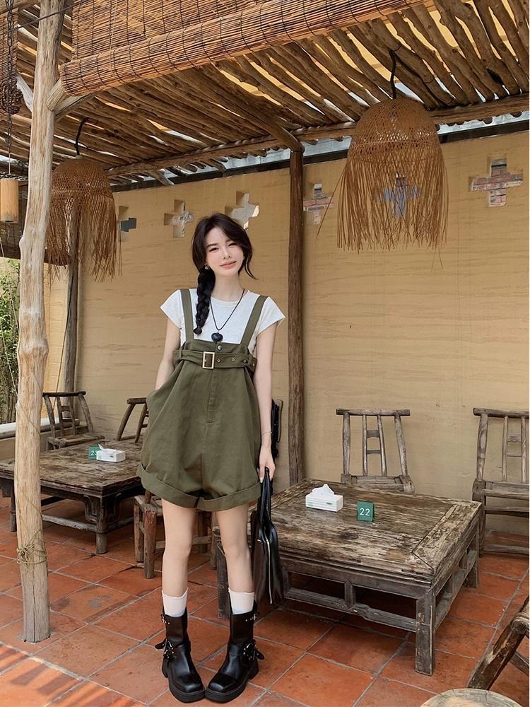 | nameOriginal | Rolled-hem suspender wide-leg workwear with short-sleeved T-shirt underneath |