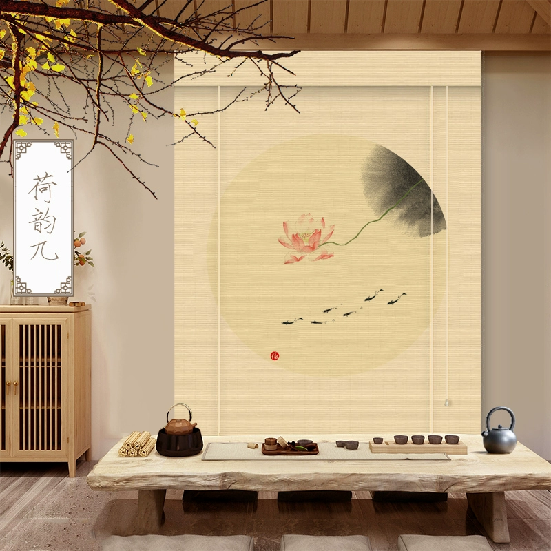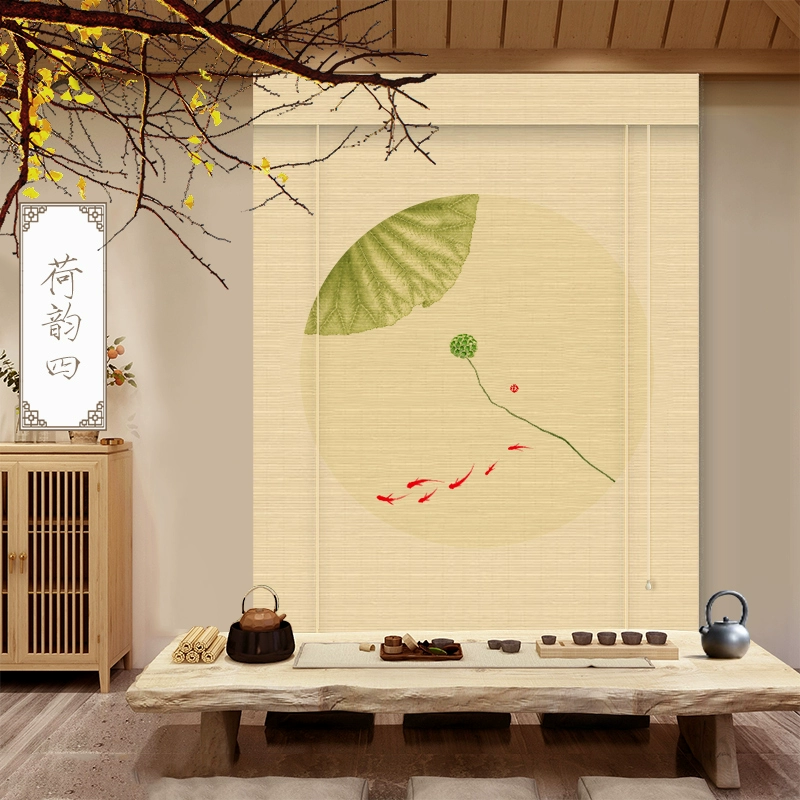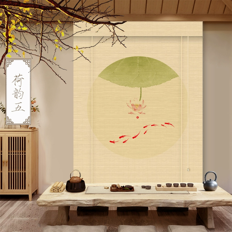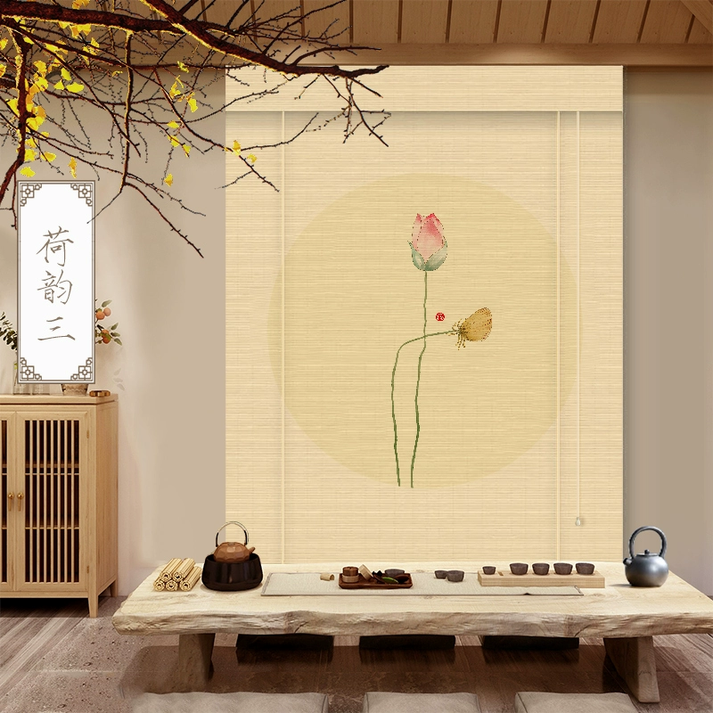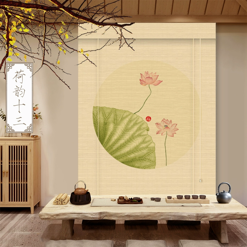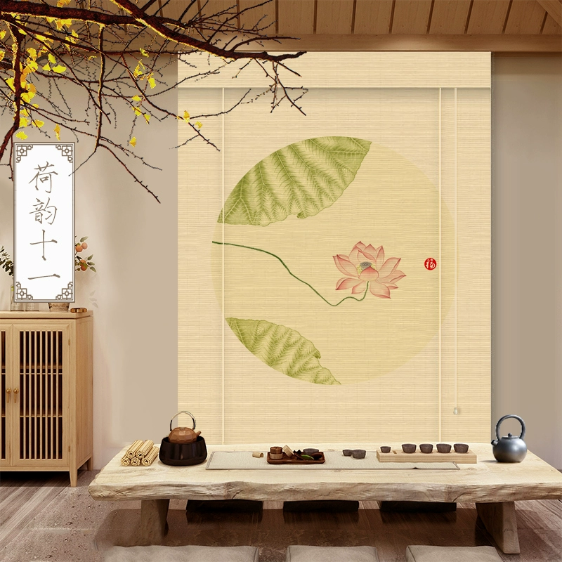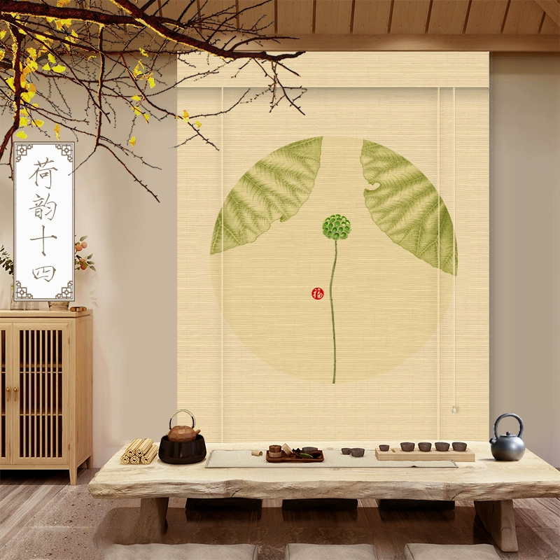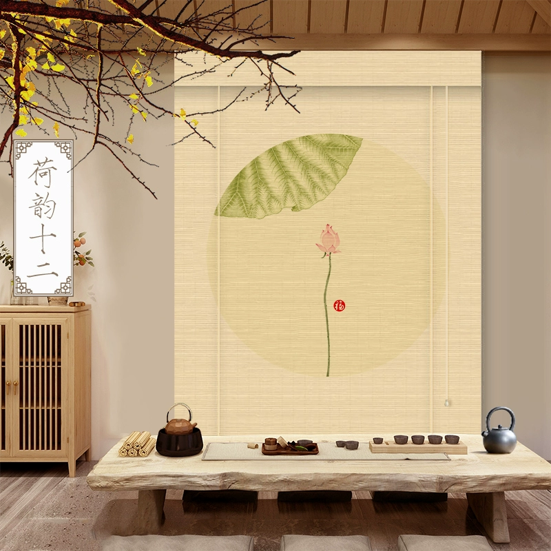 Rolling curtain curtains New Chinese-style lotus blackout screen bamboo curtains