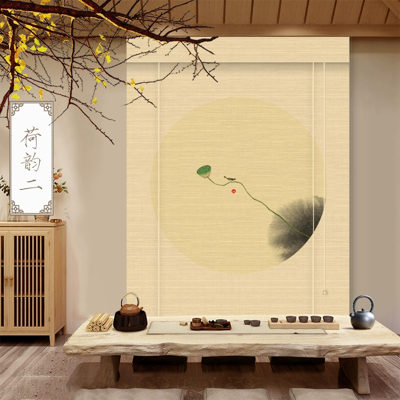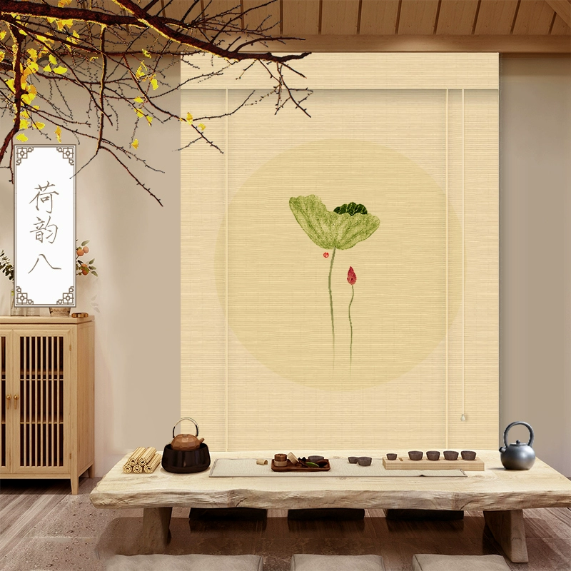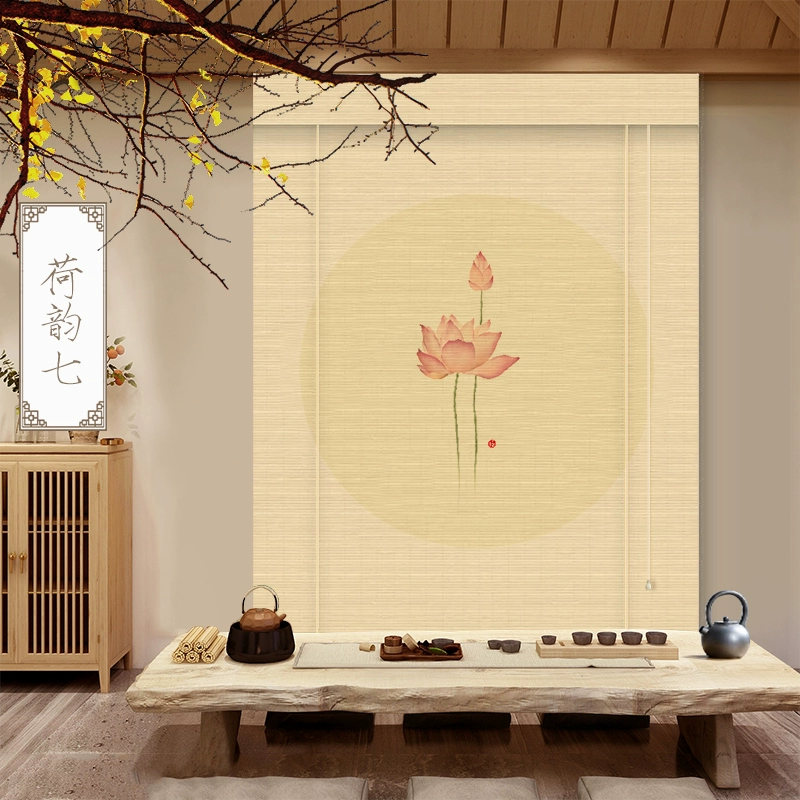 Roller blinds new Chinese style lotus blackout screen bamboo blinds