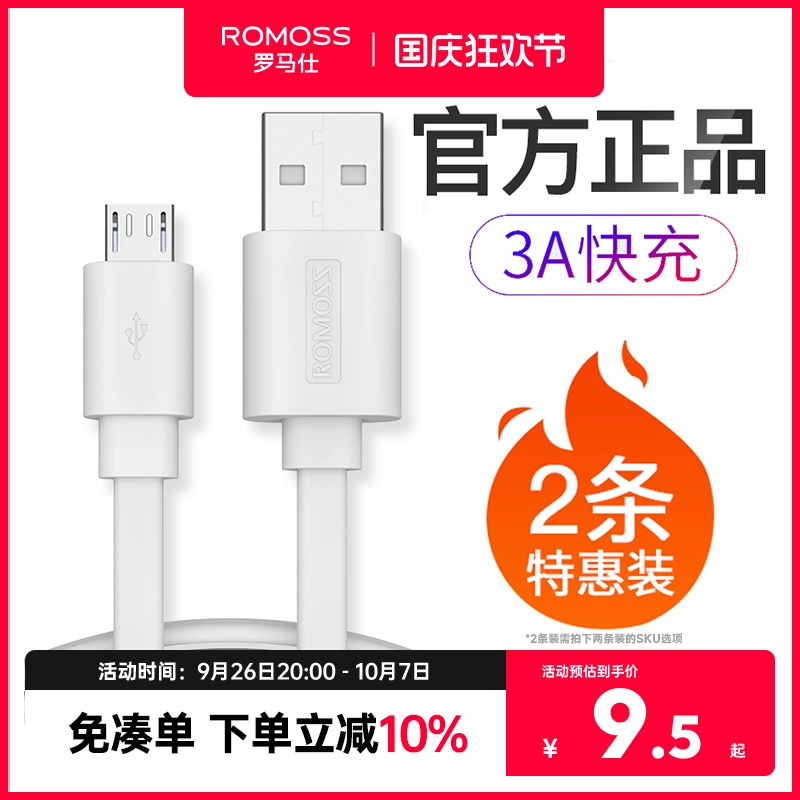 Romans Android data cable fast charging extended Bluetooth headset charging cable flash charging micro usb suitable for Huawei Xiaomi vivoppo Honor Samsung mobile phone universal power bank genuine