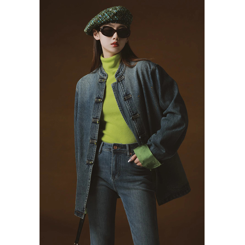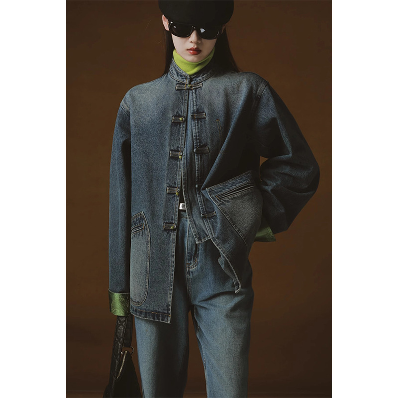 | nameOriginal | Rongtai Jade buckle stand collar Denim coat women's clothing new Chinese style national style buckle washed denim clothing 2024 Spring |