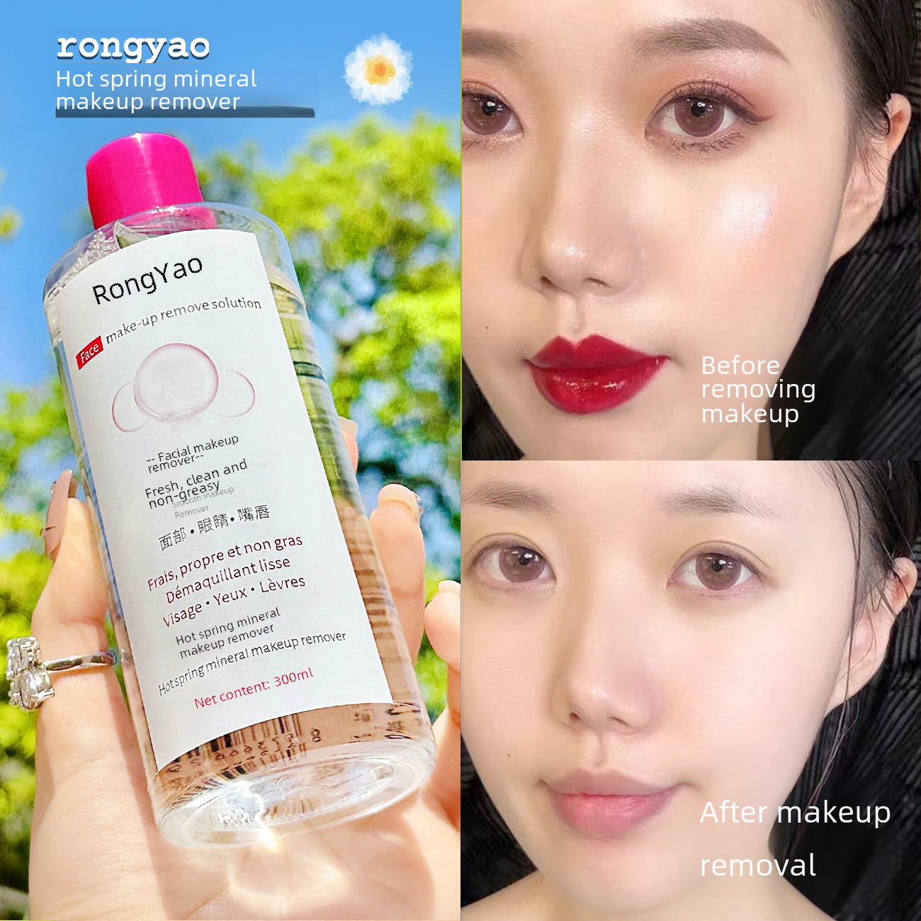 | nameOriginal | Rongyao Amino Acid Press Makeup Remover for Face Gentle Cleansing Makeup Remover Hot Spring Mineral Makeup Remover for Women Wholesale |