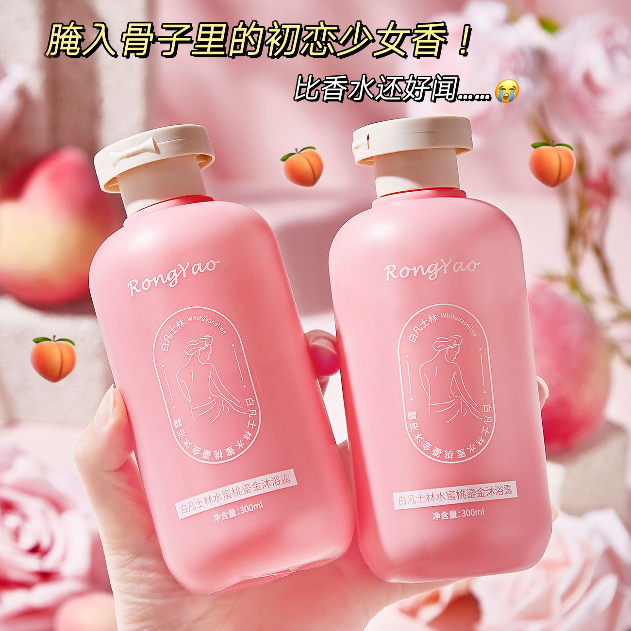 Rongyao White Vaseline peach Golden Shower Gel hydrating moisturizing transparent skin beauty fragrance shower gel factory wholesale