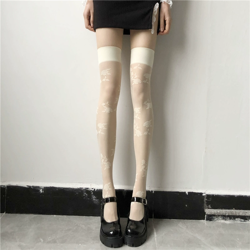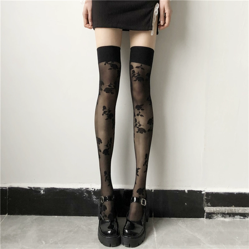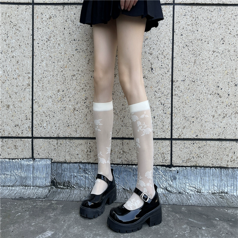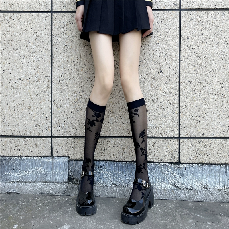 Rose black stockings women's thin mid-calf JK calf socks sexy black silk over-the-knee long pure lust white stockings