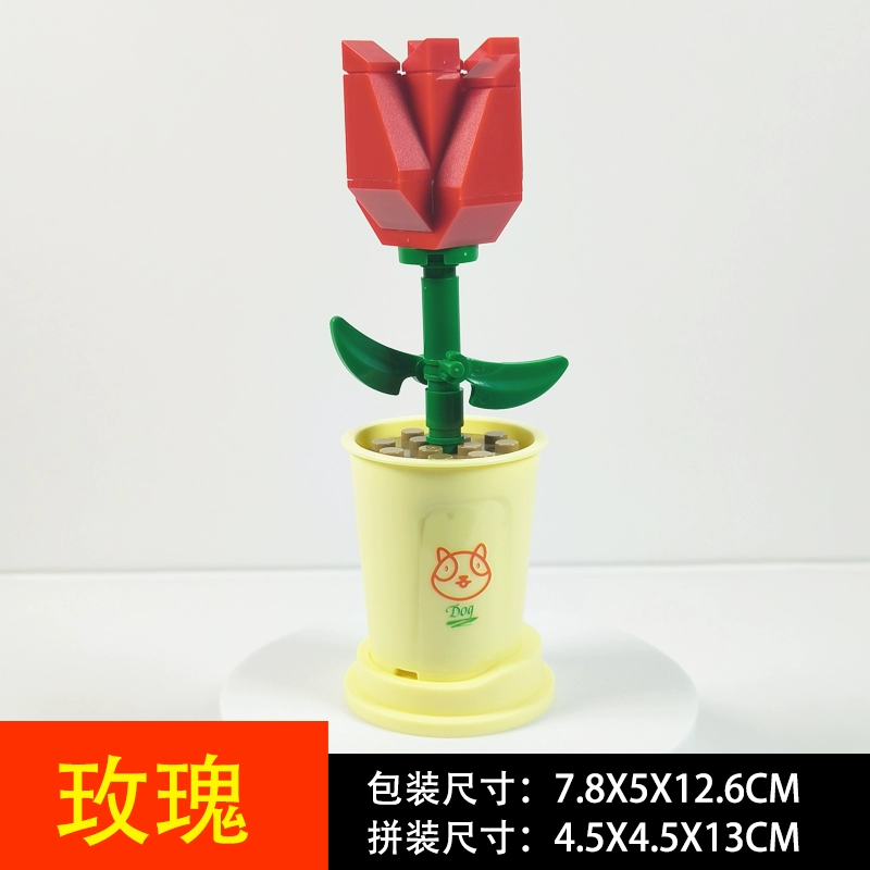 Rose bouquet ornament model girl puzzle building blocks