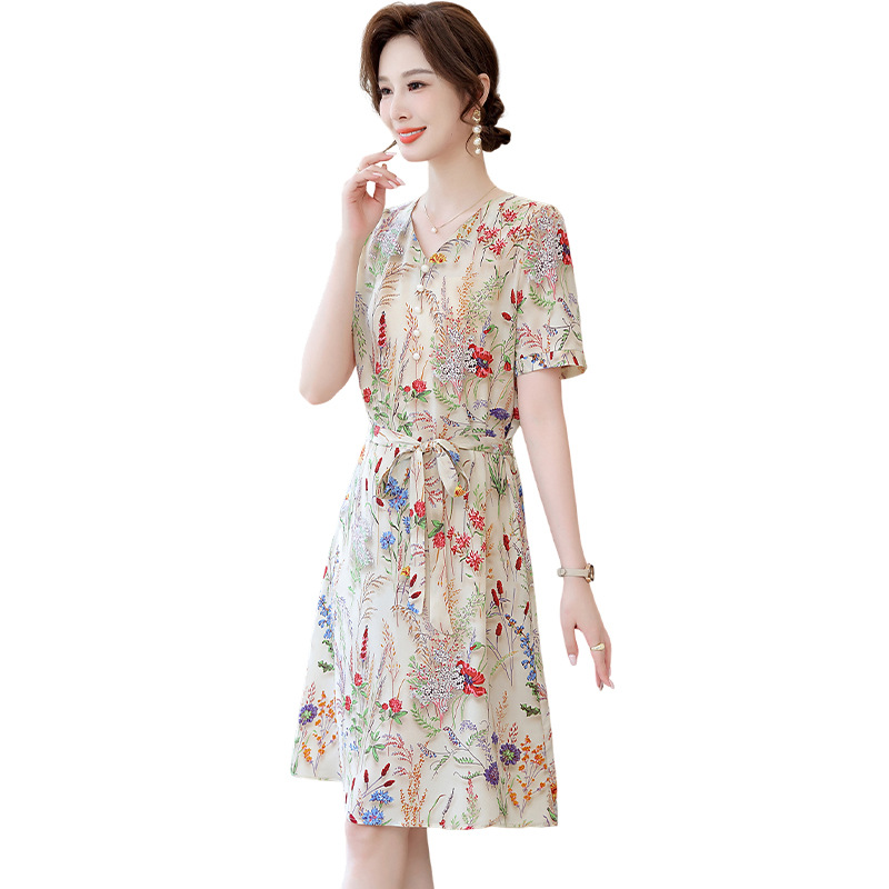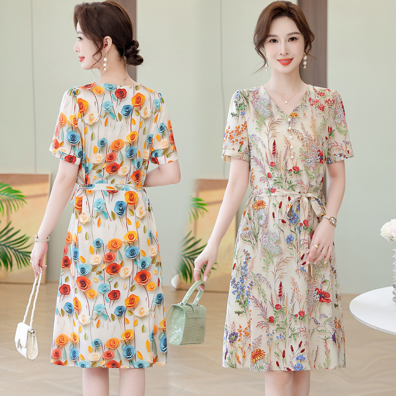 | nameOriginal | Rose dress Mother Summer Dress Fashion Temperament Middle-aged and Elderly Women's Belly Covering Slimming Mid-length Dress |