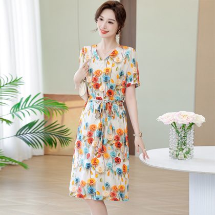 | nameOriginal | Rose dress Mother Summer Dress Fashion Temperament Middle-aged and Elderly Women's Belly Covering Slimming Mid-length Dress |