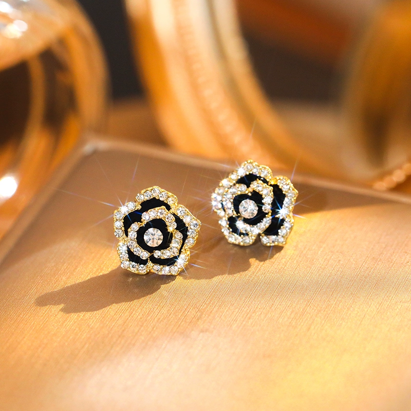 | nameOriginal | Rose flower sterling silver light luxury retro Hong Kong style camellia earrings women's niche earrings Internet celebrity high-end small fragrance earrings summer |