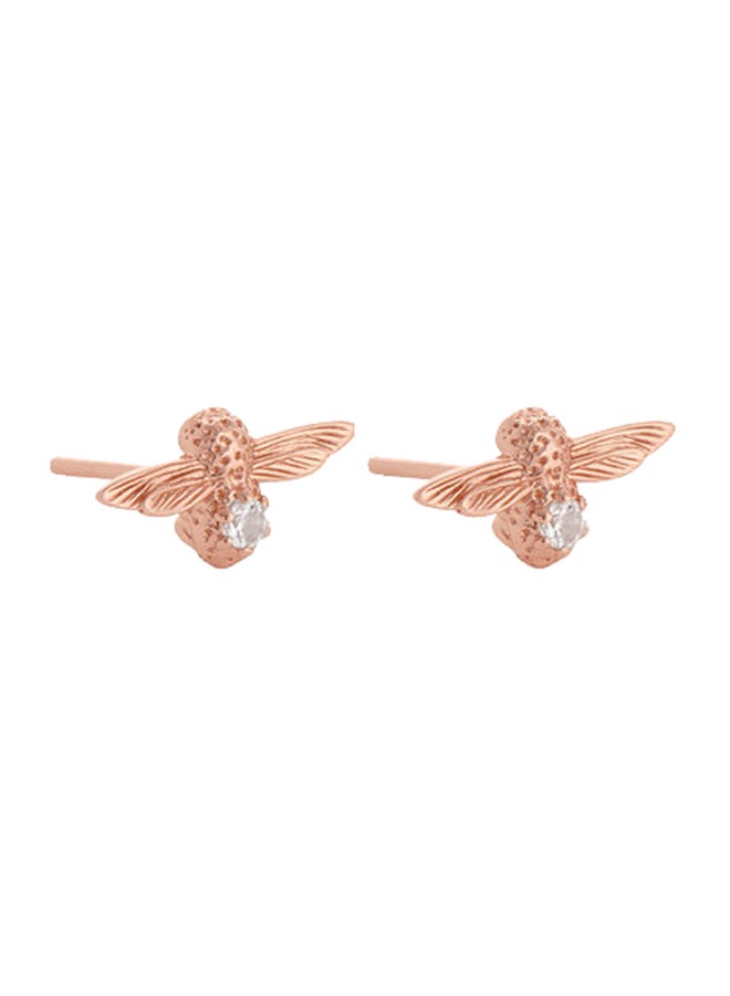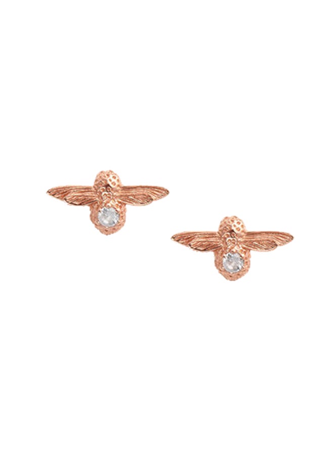 Rose Gold and White Topaz Bee Stud Earrings for Celebrations.