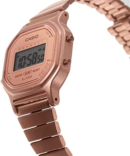 With its water-resistant design, this watch can withstand splashes and brief immersion in water, making it ideal for outdoor activities and sports. The Casio Women’s Digital Quartz Watch with Stainless Steel Strap in Rose Gold is a must-have for any fashion-forward woman who wants a reliable and stylish timepiece that can keep up with her busy lifestyle.