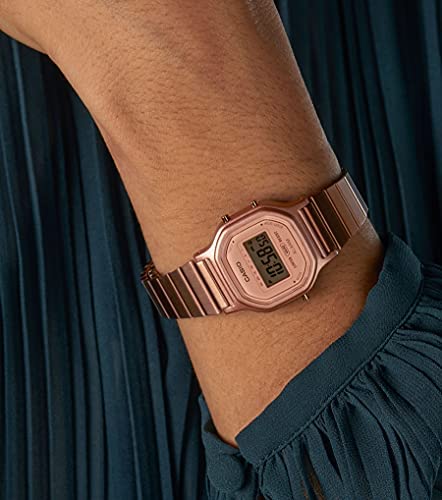 Introducing the Casio Women’s Digital Quartz Watch with Stainless Steel Strap in Rose Gold – the perfect accessory for the modern woman who values both style and functionality. This watch features a sleek and durable stainless steel strap that is both comfortable and secure on the wrist. The rose gold color adds a touch of elegance and sophistication to any outfit, making it perfect for both casual and formal occasions.