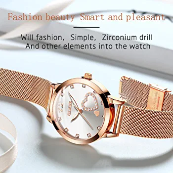 Rose Gold Mesh Strap Ladies Watch with Diamond Accents and Waterproof Design.