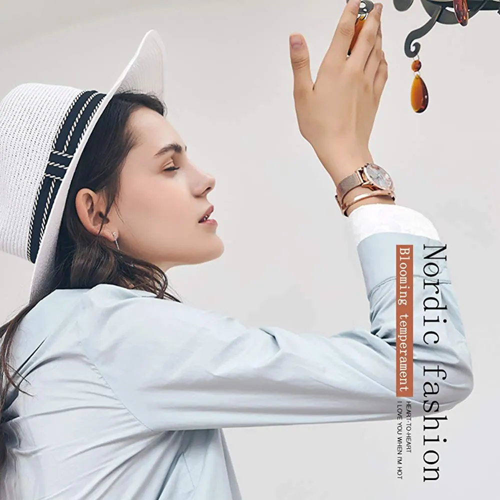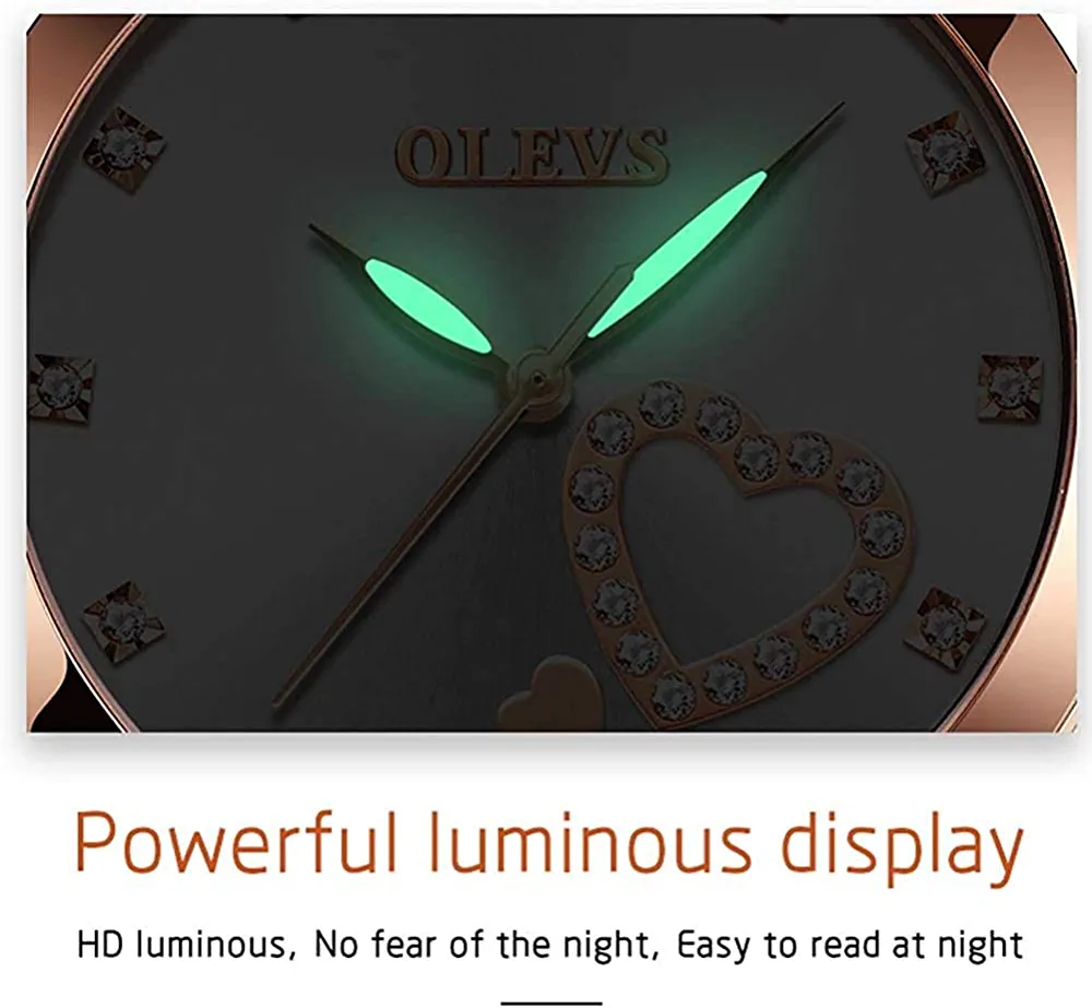 Whether you’re dressing up for a special occasion or simply want to add a touch of glamour to your everyday look, this Ladies Watch Japanese Quartz Rose Gold Stainless Steel Mesh Strap Diamond Luxury Dress Waterproof Luminous Bracelet Sets is the perfect choice.