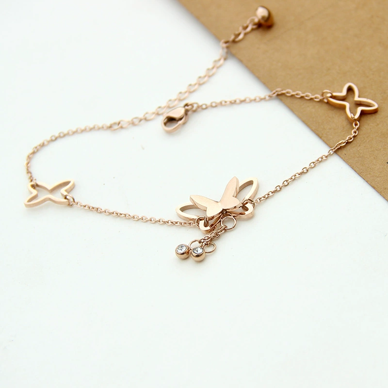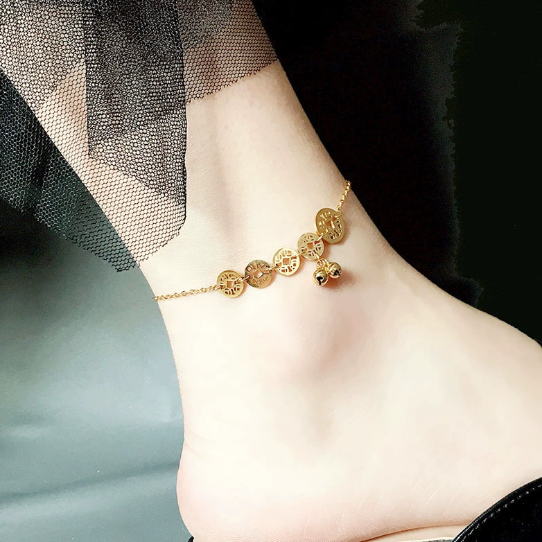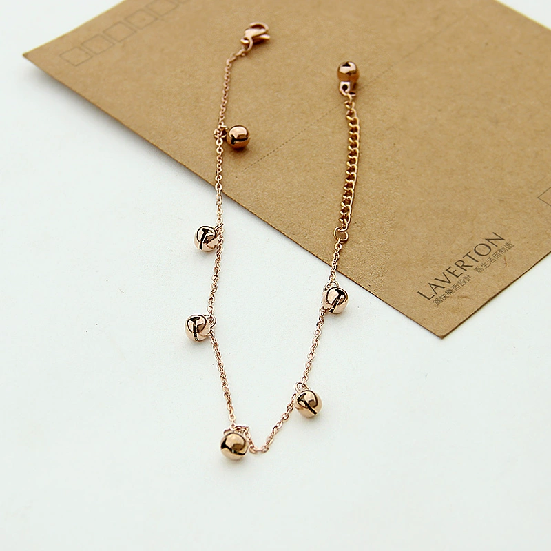 | nameOriginal | Rose gold niche design anklet for women Korean style simple and personalized travel and vacation titanium steel bell internet celebrity anklet |