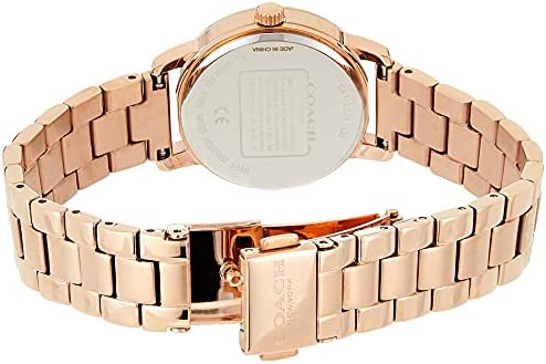 The Coach Women’s Rose Gold Dial Ionic Rose Gold Plated Steel Watch – 14502977 is a stunning timepiece that exudes elegance and sophistication. The watch features a beautiful rose gold dial that is complemented by a matching ionic rose gold plated steel band. The band is adjustable and can be customized to fit any wrist size comfortably. The watch is powered by a reliable quartz movement and features a scratch-resistant mineral crystal that protects the dial from scratches and other damages. The watch is water-resistant up to 30 meters, making it suitable for everyday wear. This Coach watch is perfect for women who want to add a touch of luxury to their everyday look. It is a timeless piece that will never go out of style and is sure to become a cherished accessory for years to come.