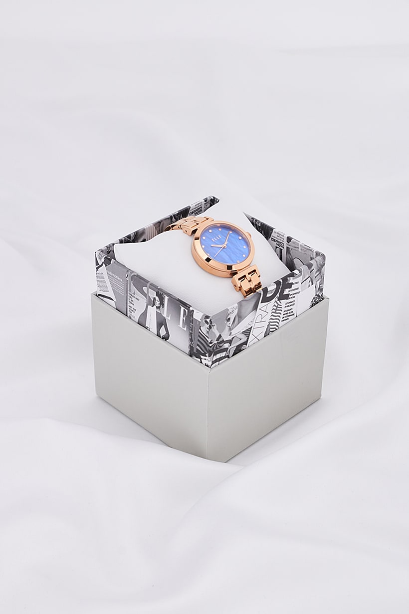 | descriptionOriginal | Dial Shape : Round, Dial Window Material : Glass, Display Type : Markers, For Gift : Yes, Ideal For : Women, Strap Color : Rose Gold, Strap Material : Stainless, Types of Watch : Analog, Watch Closure : Push Button, Dial Color : Blue, Disclaimer : Product color may slightly vary due to photographic lighting sources or your monitor settings., Color Family : Gold, |