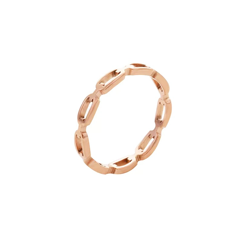 | nameOriginal | Rose gold titanium steel ring female internet celebrity trend fashion personality hollow rectangular chain link new ring |