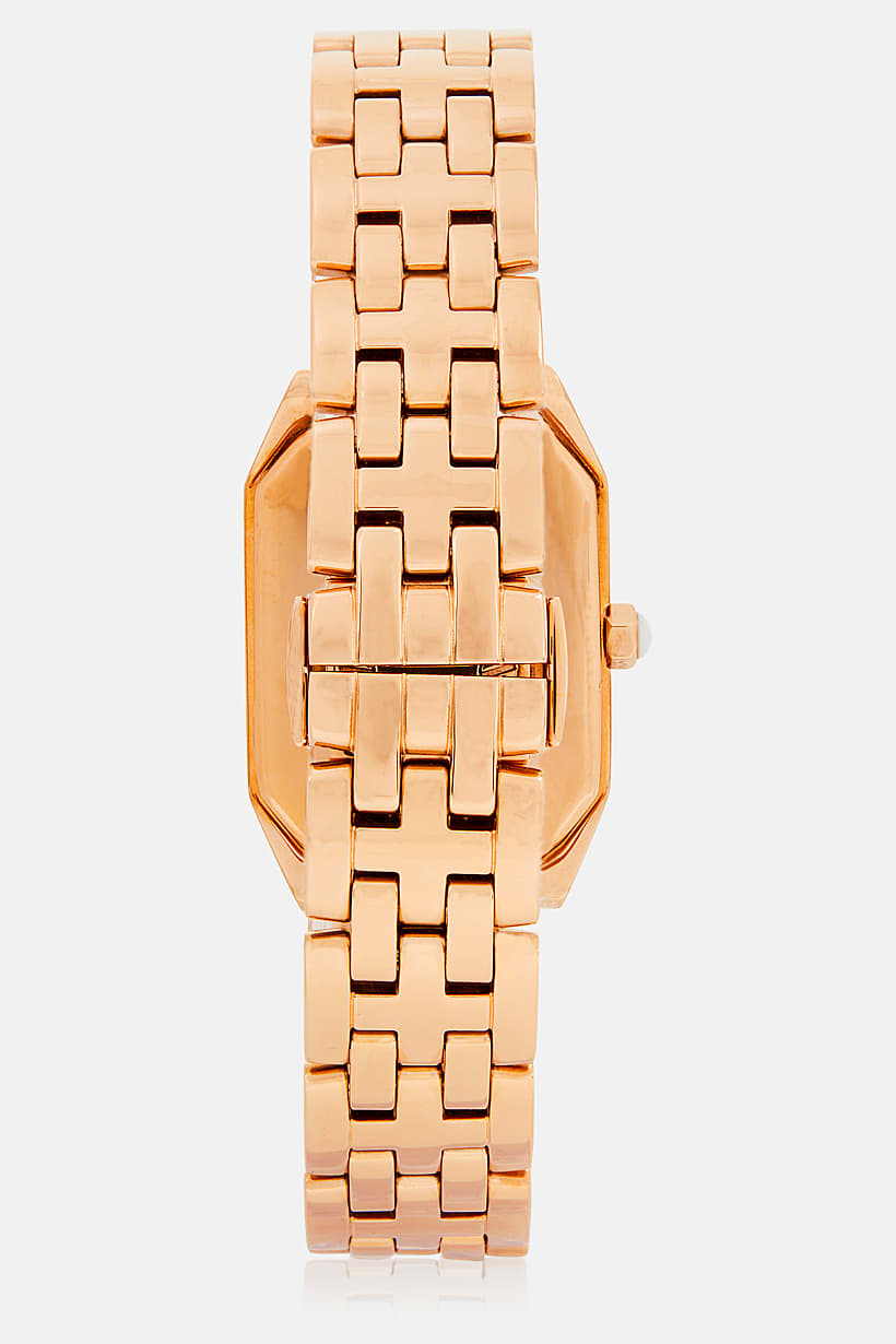 Dial Shape : Rectangle, Dial Window Material : Glass, Display Type : No Display, For Gift : Yes, Ideal For : Women, Strap Color : Rose Gold, Strap Material : Stainless, Watch Closure : Deployment Clasp, Color Family : Pink, Dial Color : White,