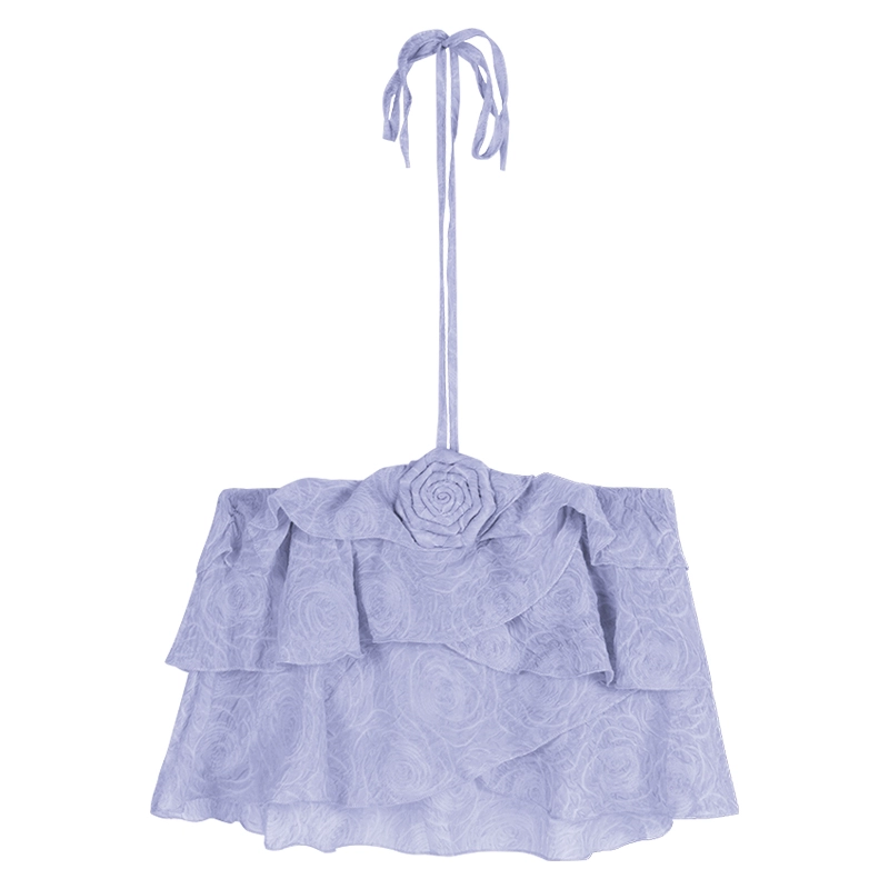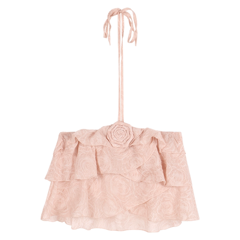 | nameOriginal | Rose pink backless sexy ruffle halter neck strap |