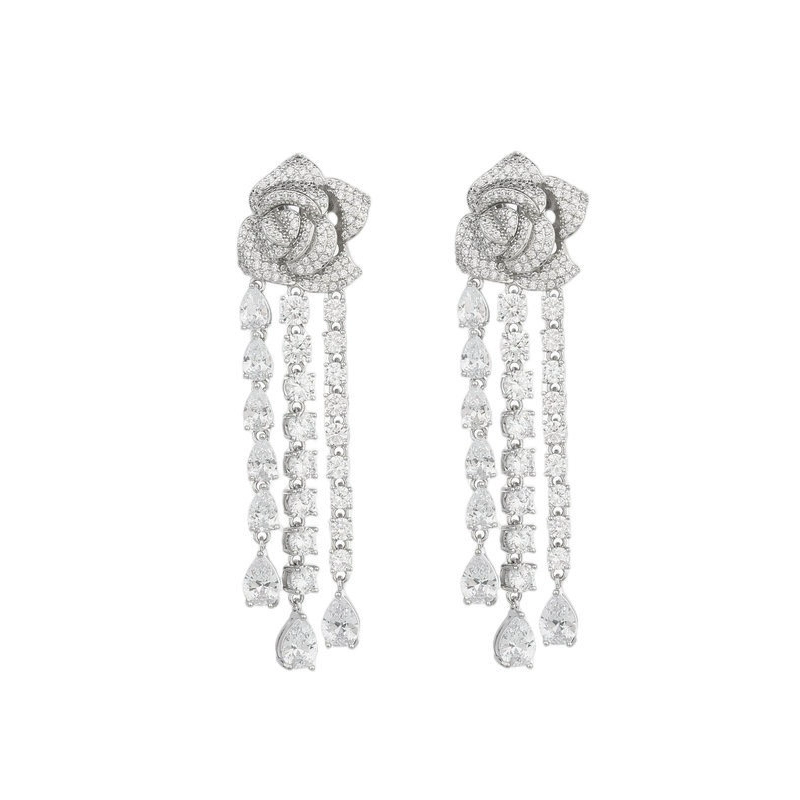 | nameOriginal | Rose Pull-Out Clavicle Chain Sparkling Diamond Earrings Flowers |