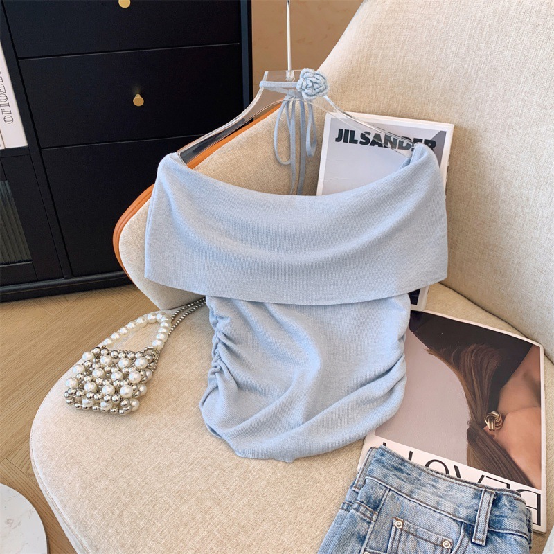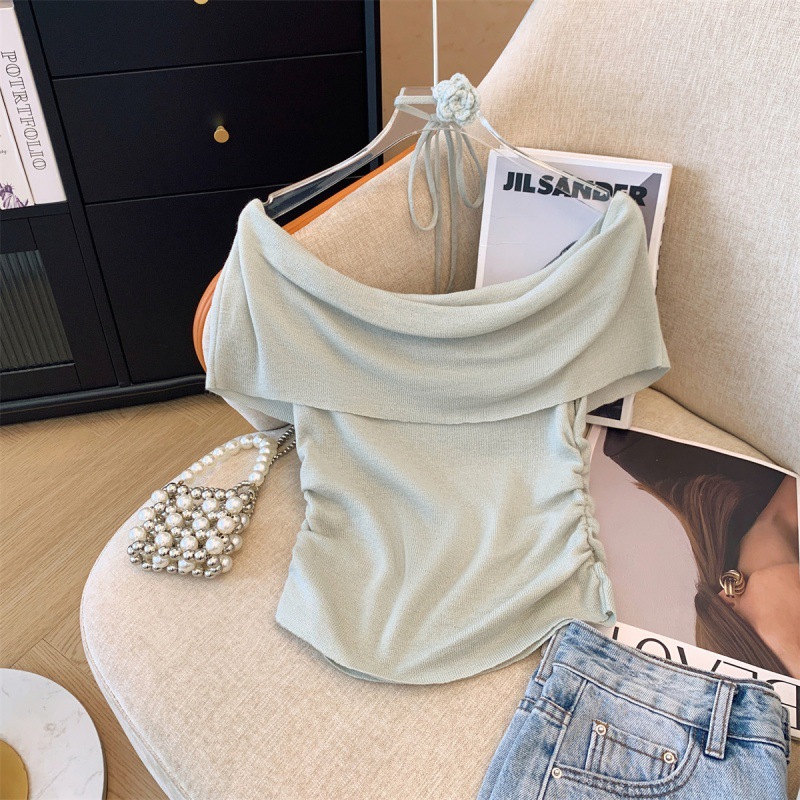 | nameOriginal | Rose Pure Desire Wind Hand-woven Flower Ribbon off-shoulder Soft Glutinous Waxy Knitted Top with Various Wears |