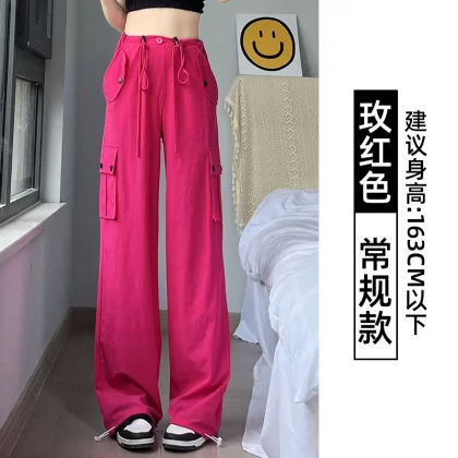 | nameOriginal | Rose red overalls for women summer 2024 new high-waisted casual wide-legged slim American retro quick-drying sports pants |
