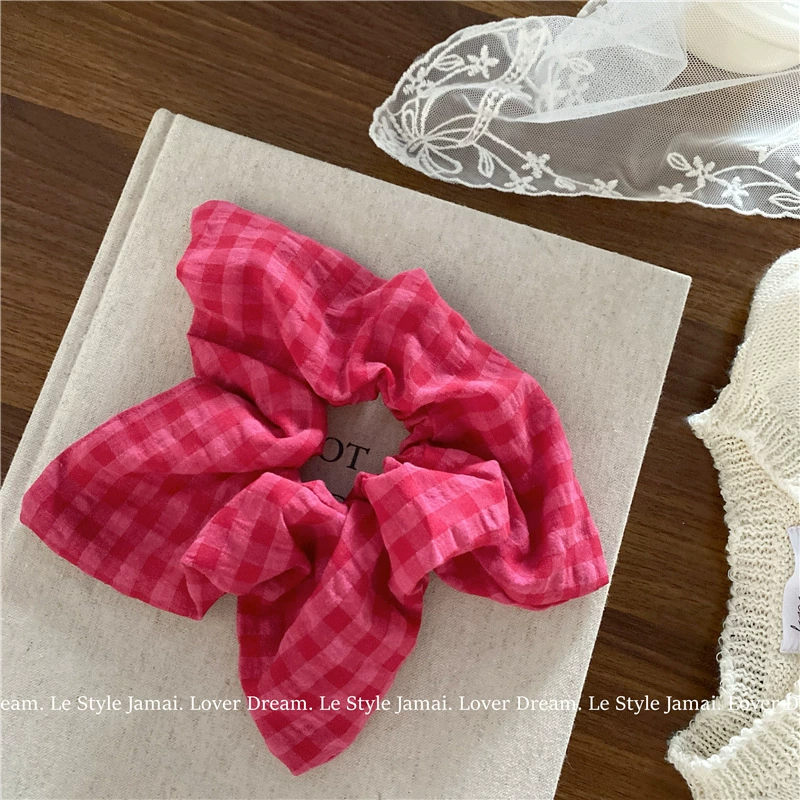 | nameOriginal | Rose red plaid ponytail girl's large intestine hair tie |