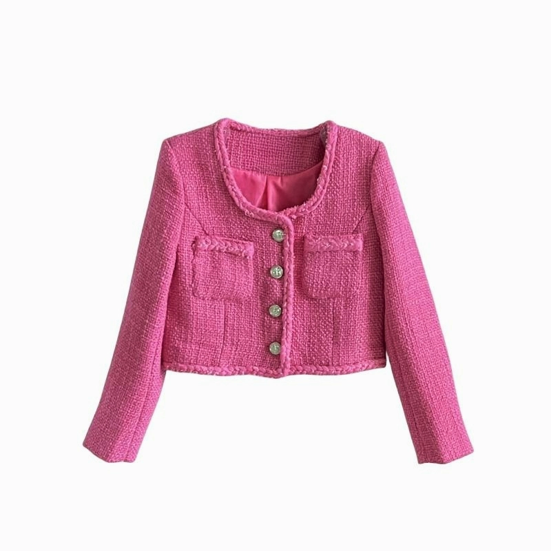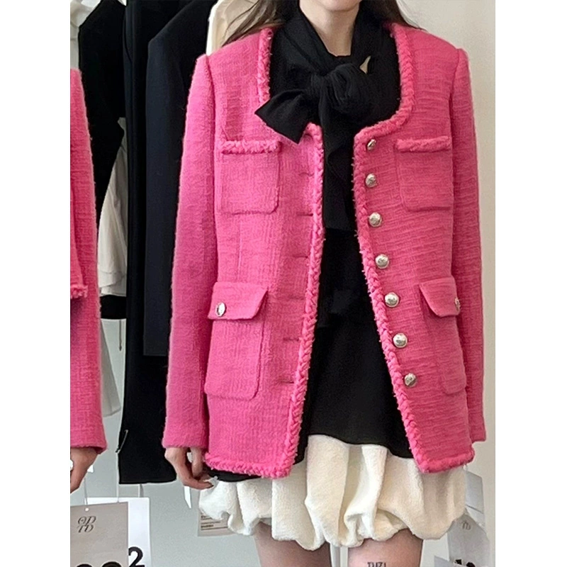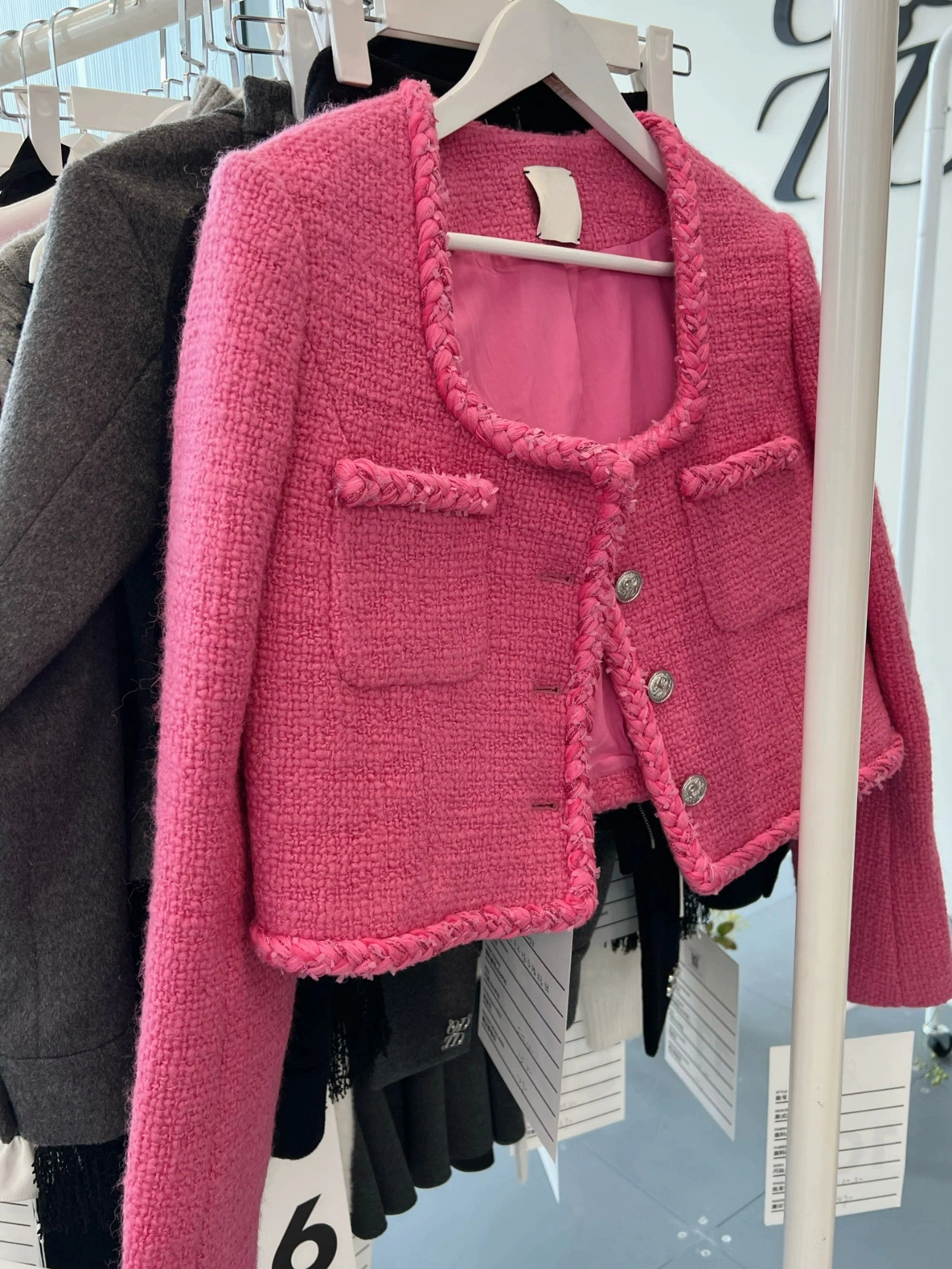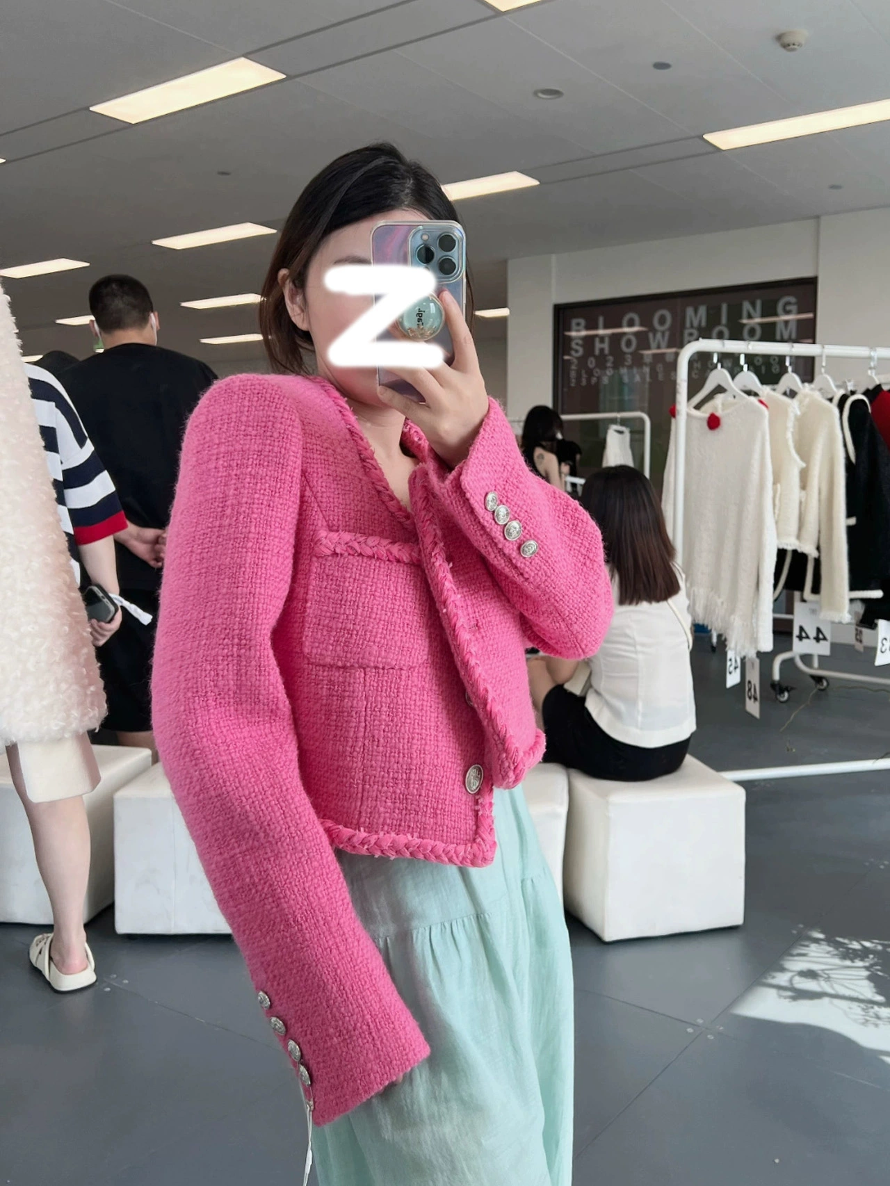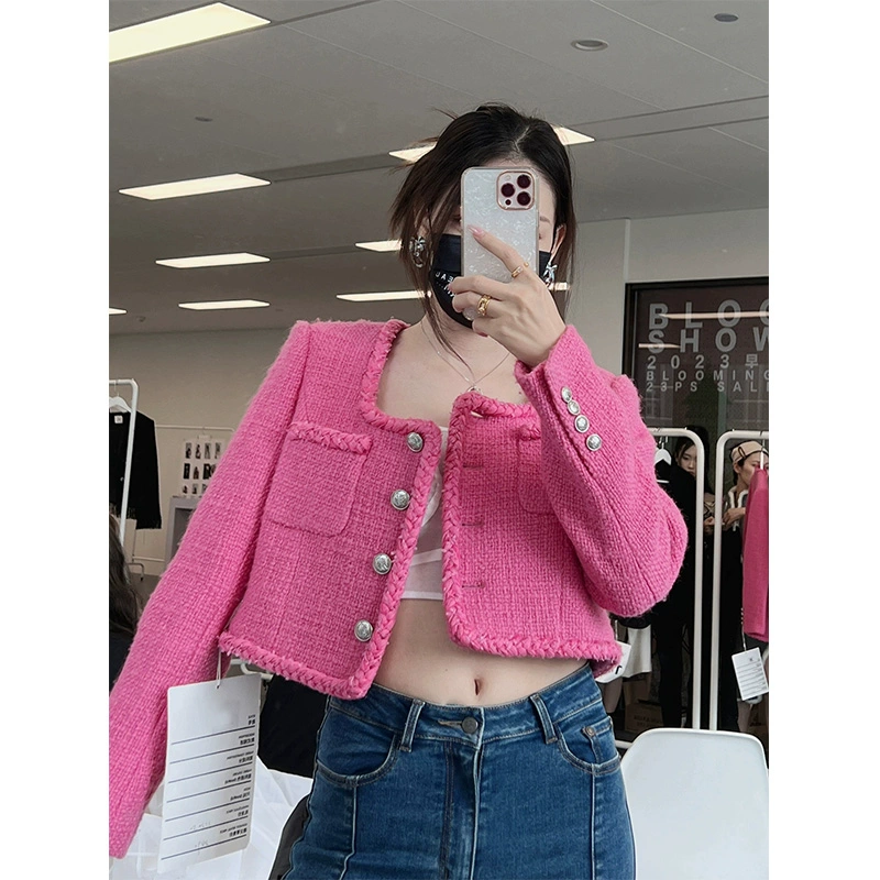 | nameOriginal | Rose red short high-waisted small fragrant style jacket for women 2024 early autumn new style high-end sense versatile and chic top |