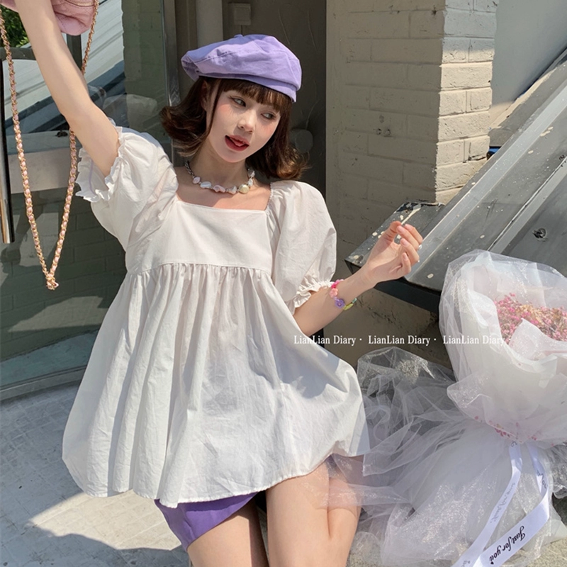 Rose Red Waist Slimming Fashionable Square Neck Women’s Shirt