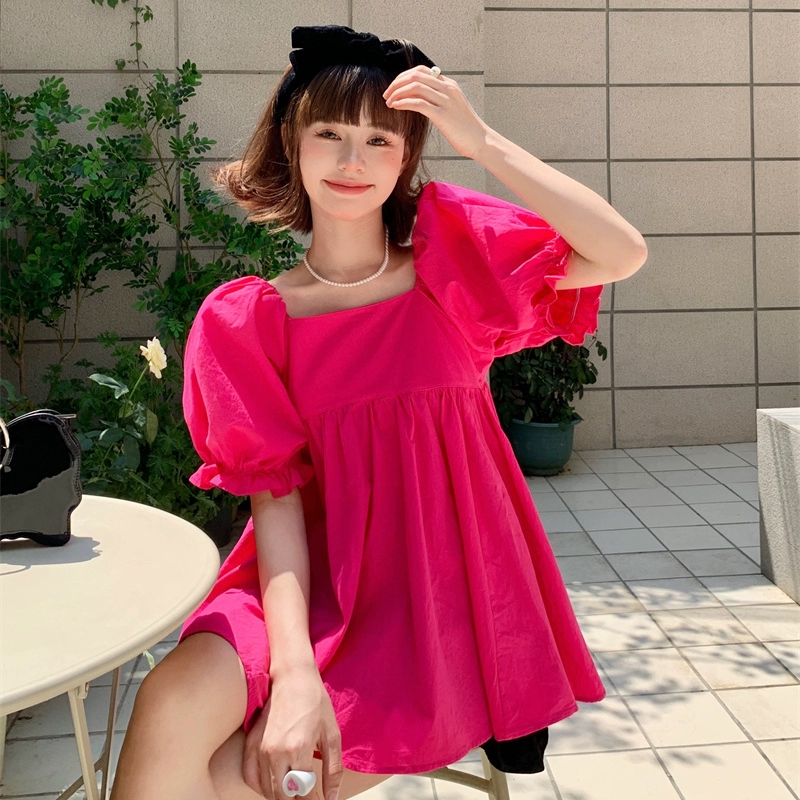 Rose Red Waist Slimming Fashionable Square Neck Women's Shirt