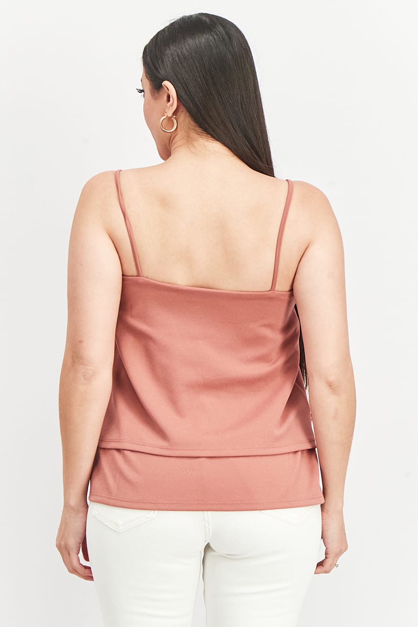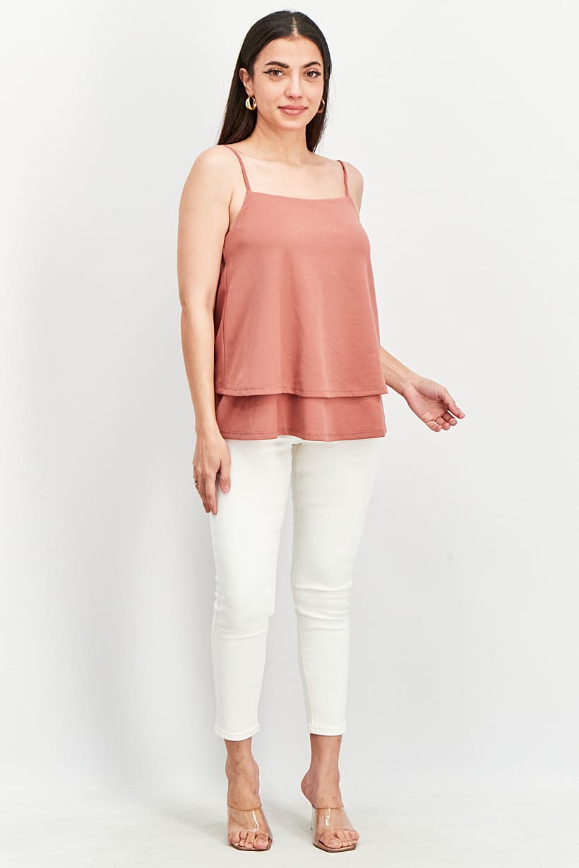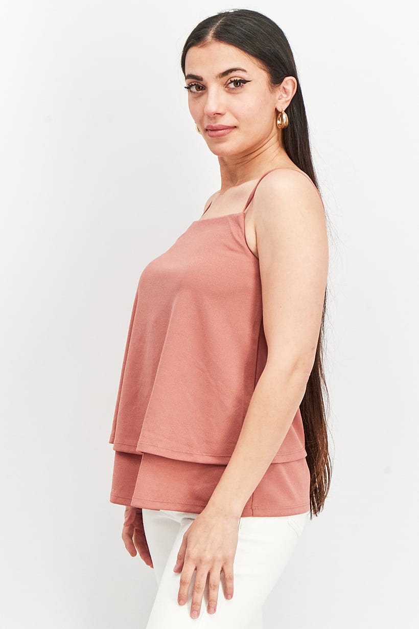 Women Square Neck Sleeveless Ruffle Blouse, Rose
