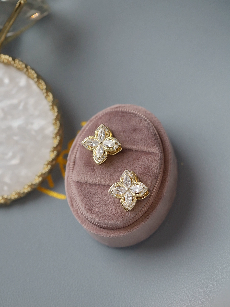 Rotatable ear piercing female niche design four-leaf clover