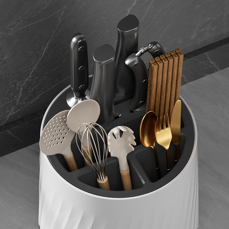 | nameOriginal | Rotatable Knife Holder Two-color Multifunctional Chopsticks Cage Kitchen Storage Rack Knife and Fork Tableware Draining Basket Simple Two-color Storage |
