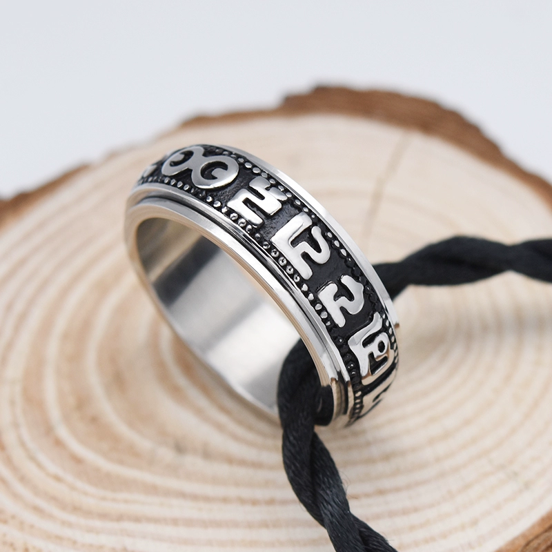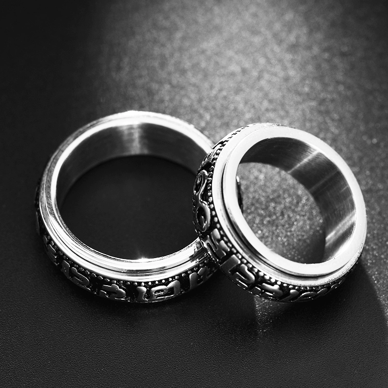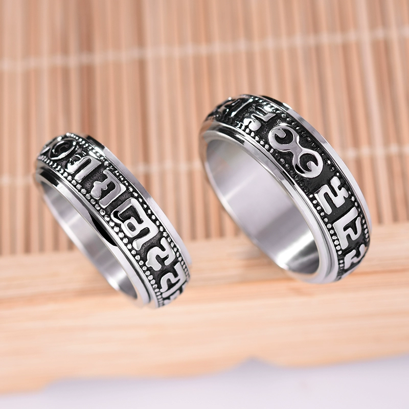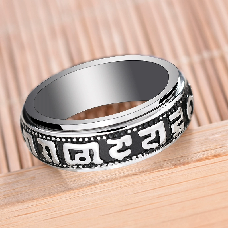 | nameOriginal | Rotatable six-word mantra titanium steel men's transfer ring retro trendy personality single index finger domineering ring jewelry |