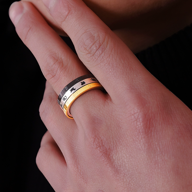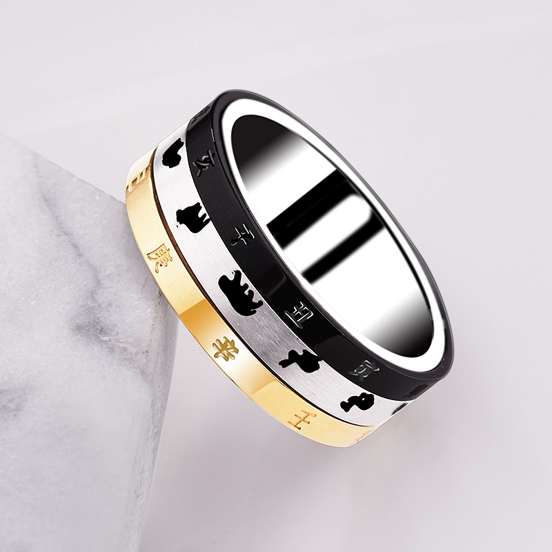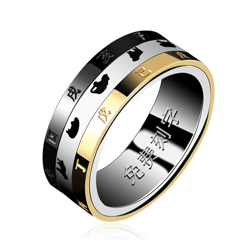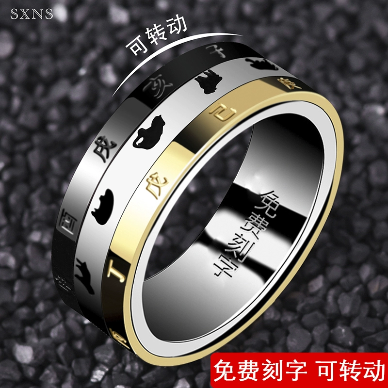 | nameOriginal | Rotatable titanium steel zodiac ring men's time index finger ring zodiac year single trendy man 12 ring engraving |