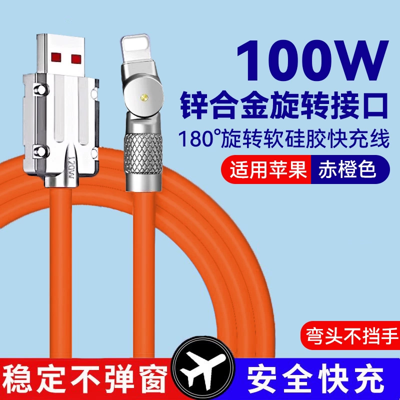 | nameOriginal | Rotating 540° data cable fast charging thickened 100w car 180 degree super flash charging suitable for Apple iPhone14 Huawei Honor typec mobile phone charger tablet 2m red wire extension |