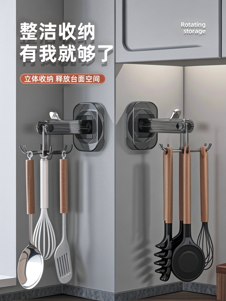 Rotating Hook No-Punch Spoon Spatula Holder Suction Cup