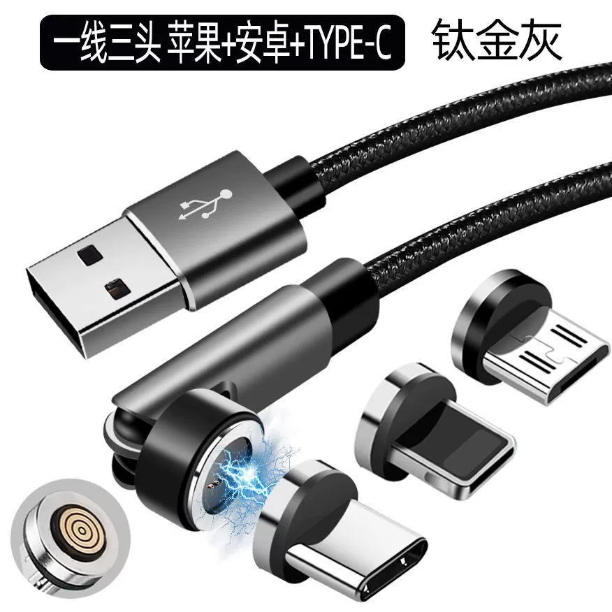 Rotating magnetic data cable car charging cable suitable for Huawei mobile phone fast charging Apple Android three-in-one type-c