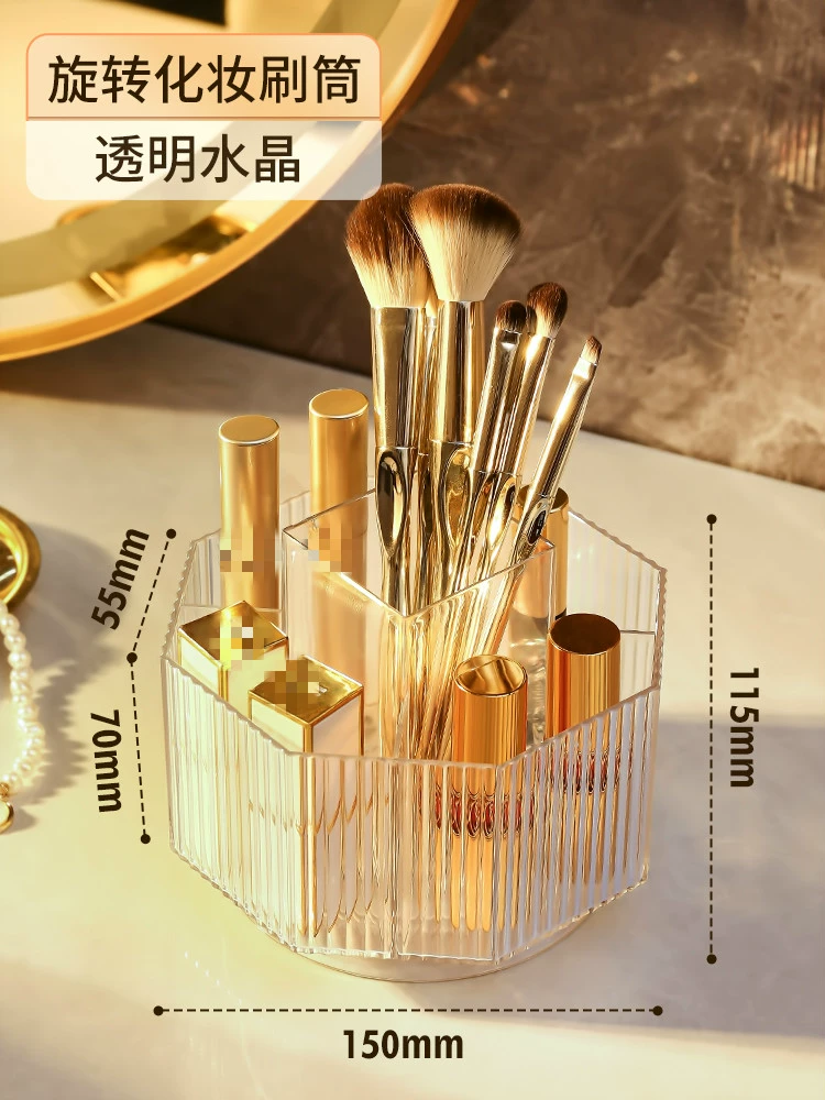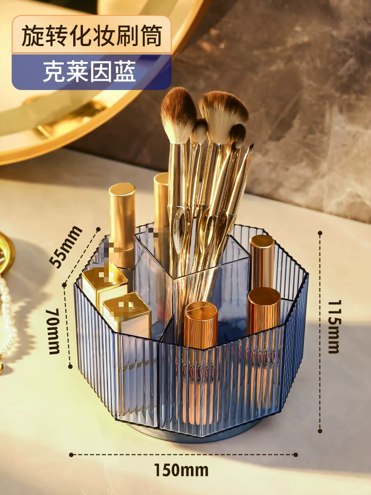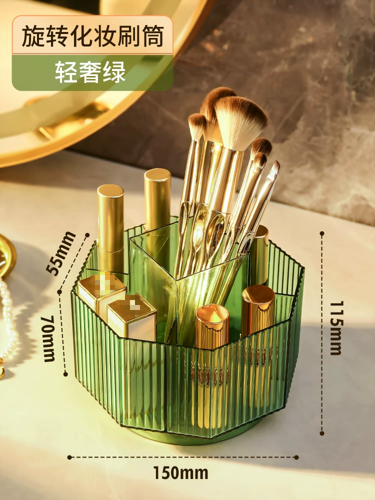 | nameOriginal | Rotating makeup brush storage barrel desktop divided eyebrow pencil holder lipstick box light luxury cosmetics eye shadow brush storage barrel |