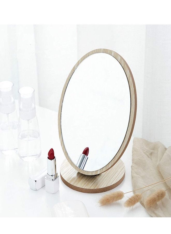 Invest in our Oval Compact Table Standing Wood Framed Desktop 90 Degree Rotating Mirror for Makeup Cosmetic and elevate your beauty routine to the next level!