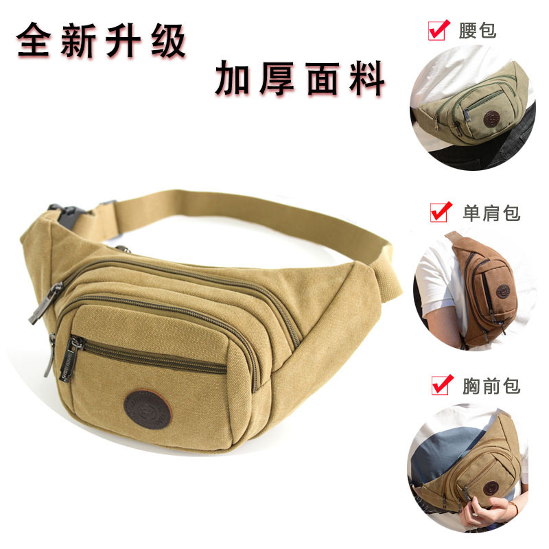 Round Canvas Crossbody Waist Bag Men’s Outdoor Sports Bag Anti-theft Riding Stall Express Cashier Change Waist Bag