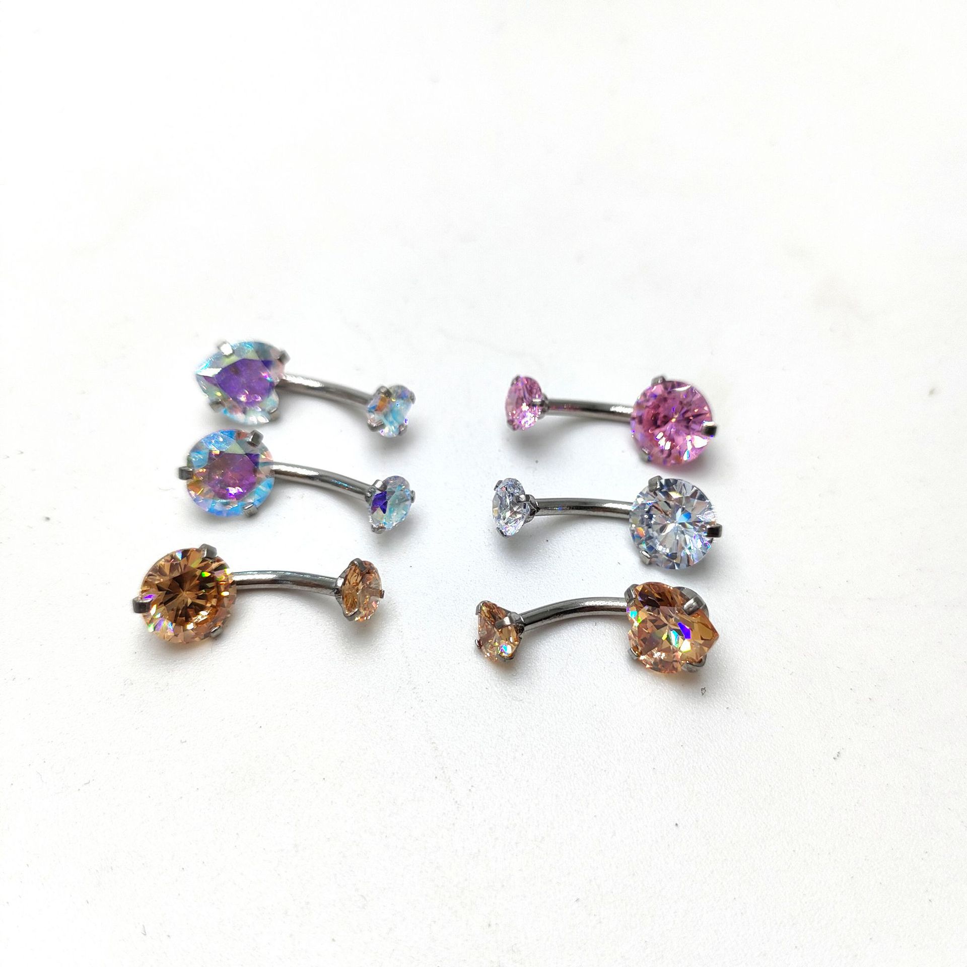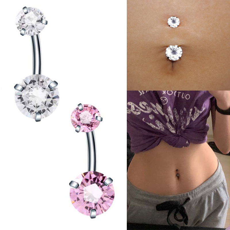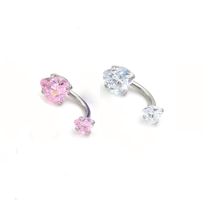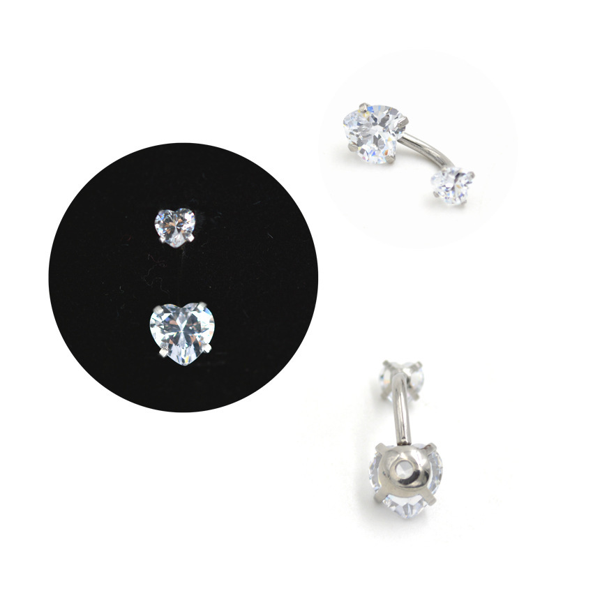 | nameOriginal | Round heart-shaped AB color powder zircon stainless steel belly button nail double inner teeth belly button ring belly button perforated jewelry |
