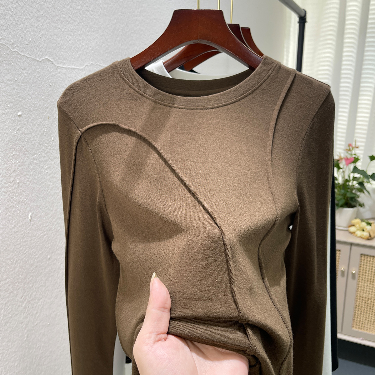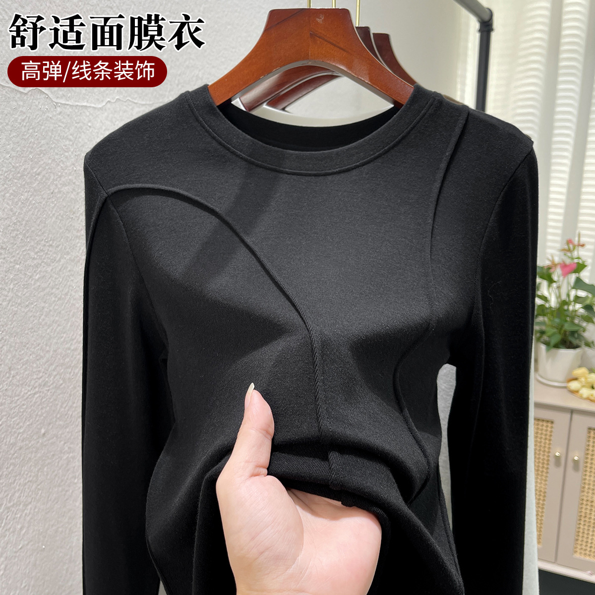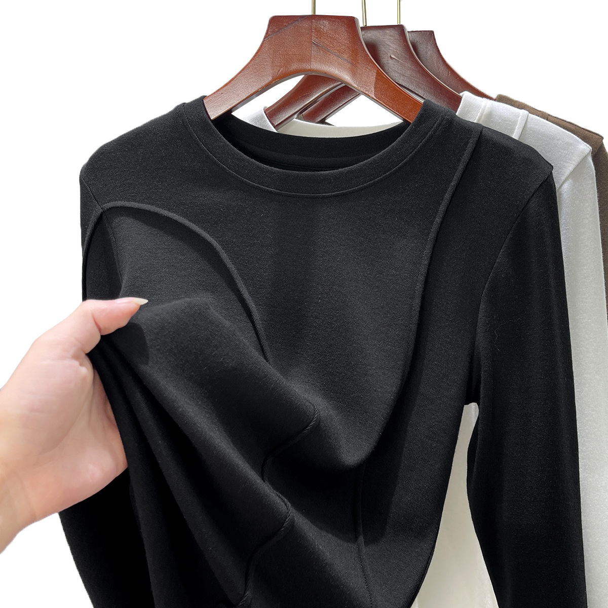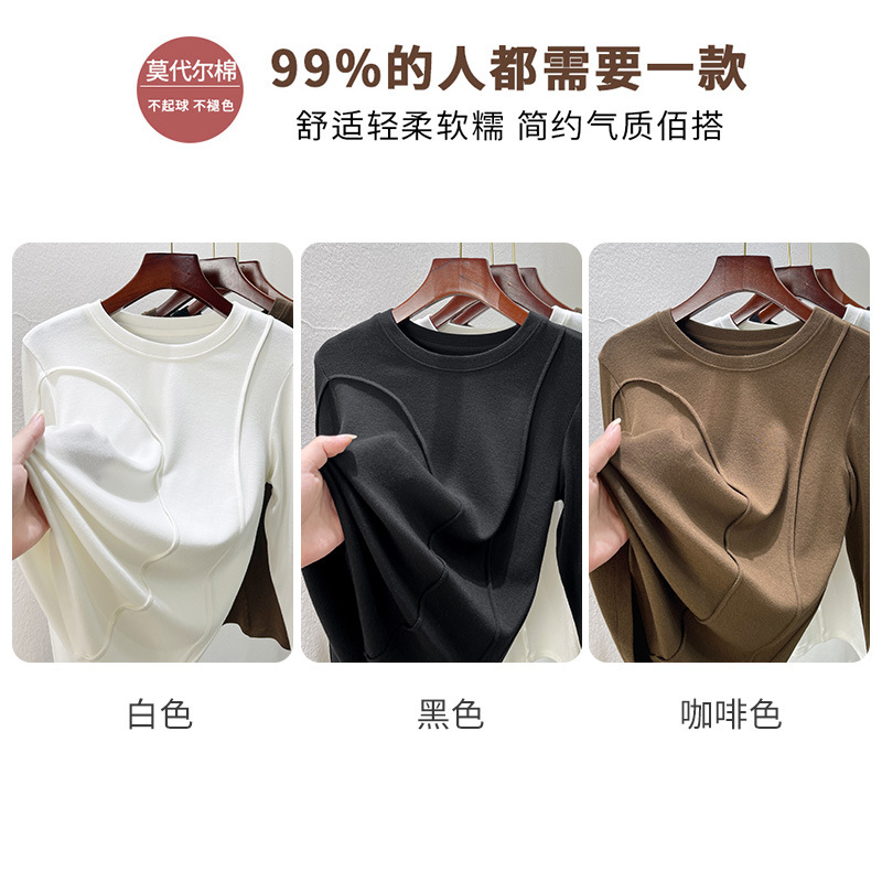 | nameOriginal | Round neck bottoming shirt Women's inner wear autumn and winter 2024 new fashionable fashionable western style long sleeve T-shirt design top |