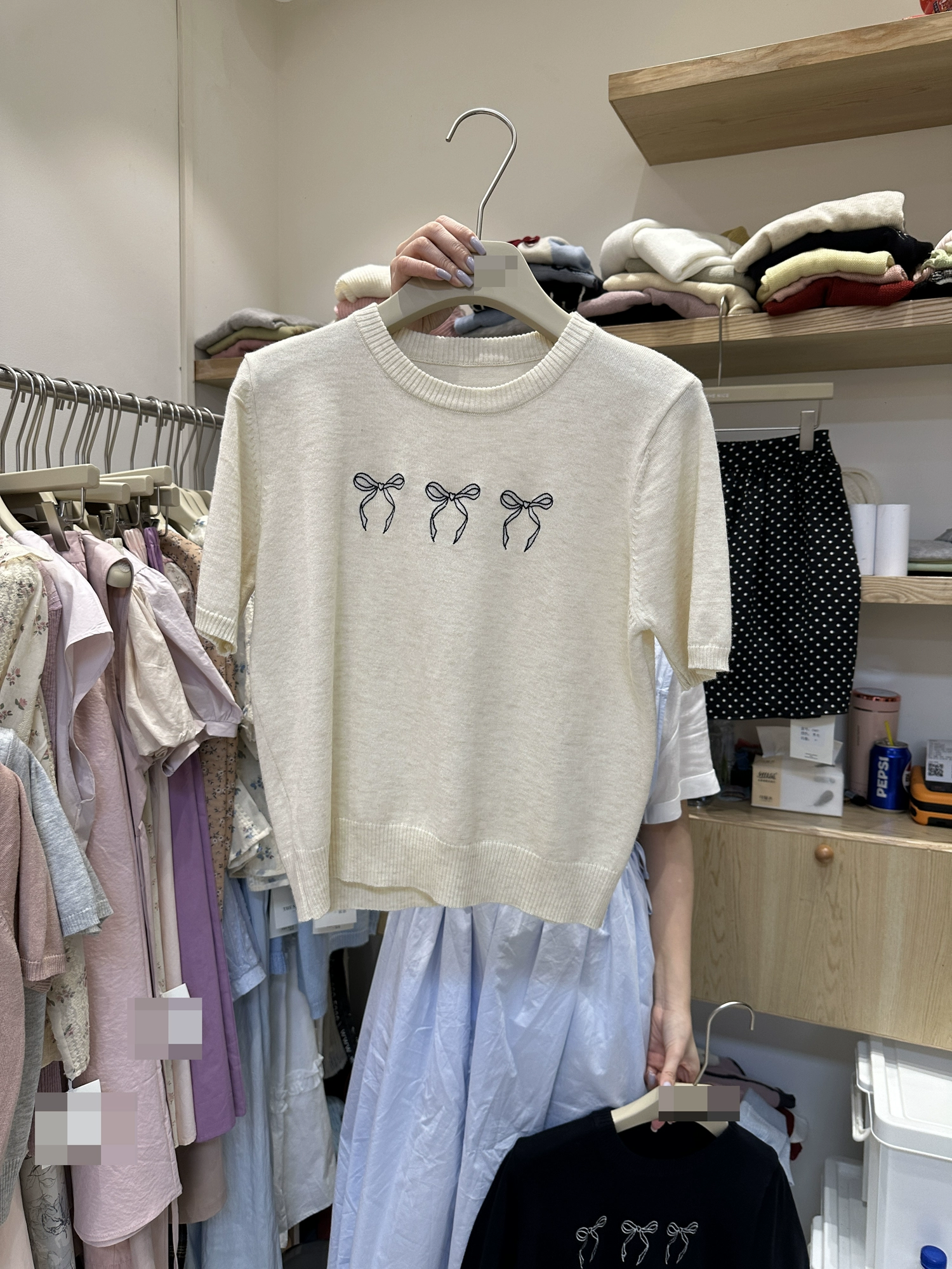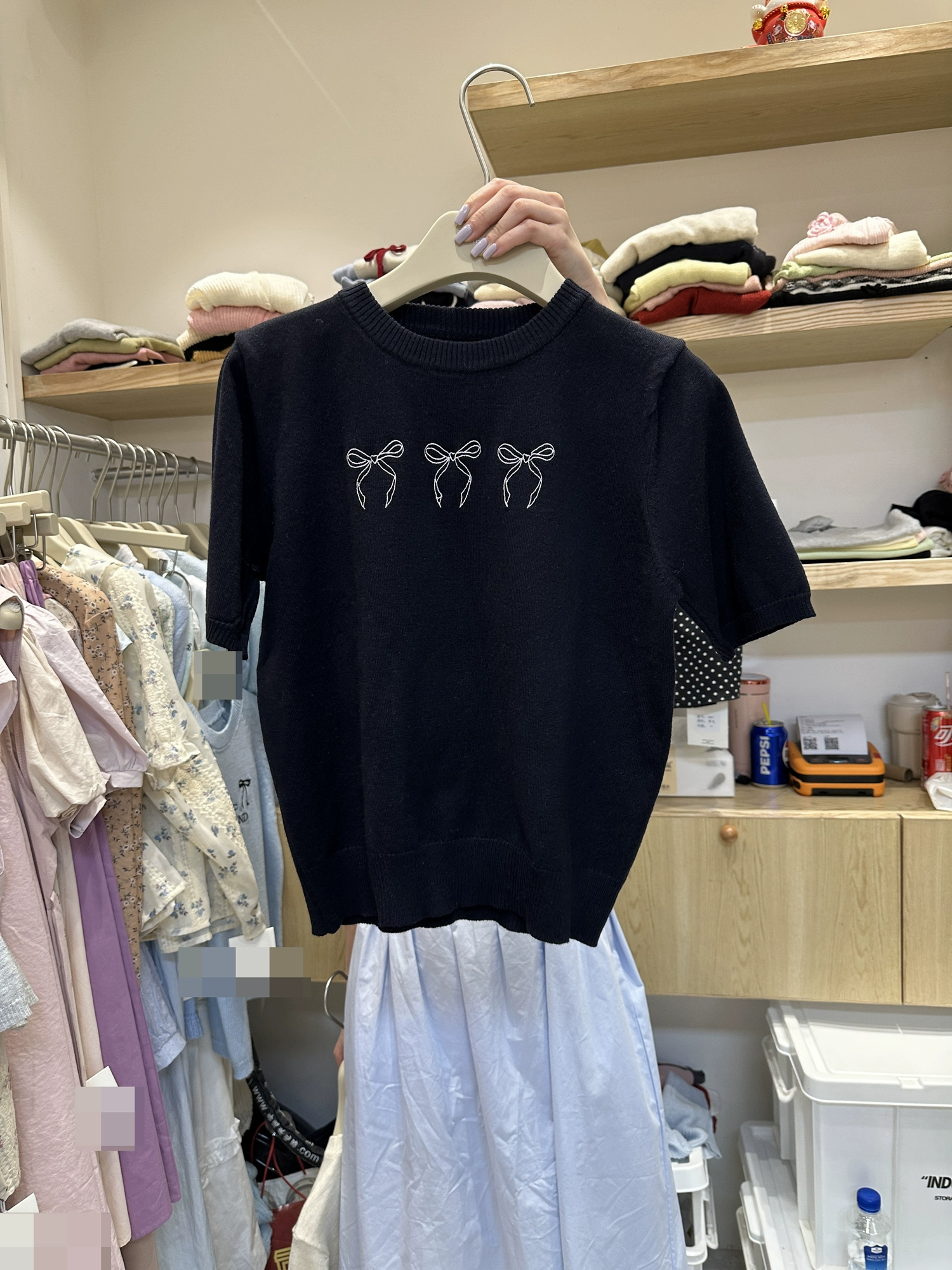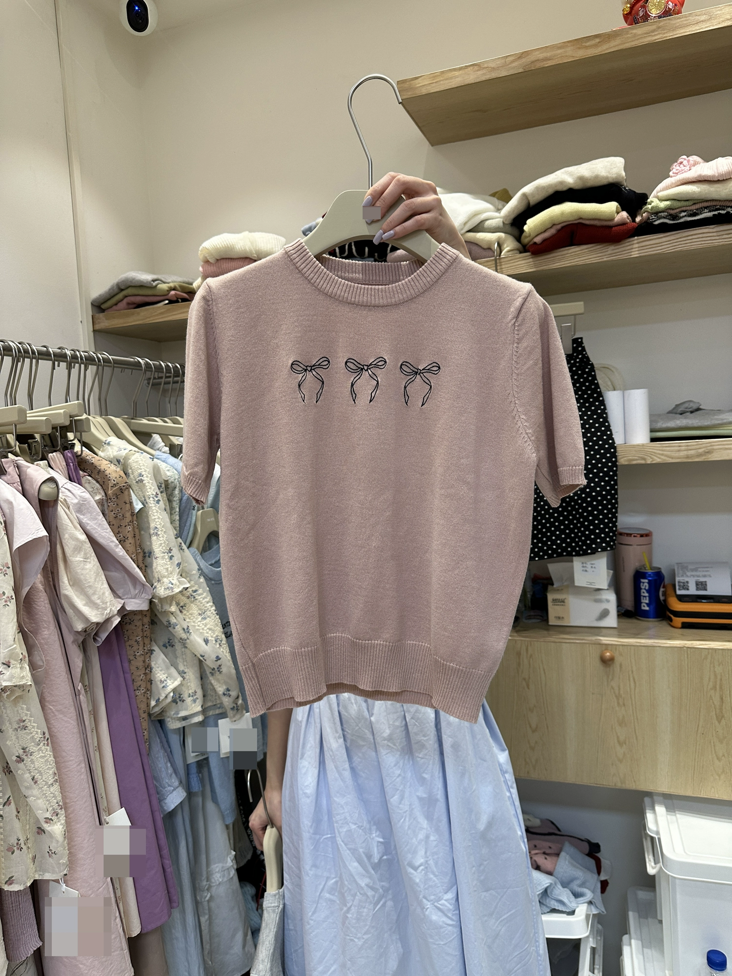 | nameOriginal | Round neck bow slimming versatile pullover knitted embroidery |