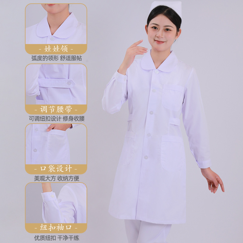 | nameOriginal | Round neck doll nurse clothes long sleeve thin thick women's suit top white Pink blue medical work clothes white gown wholesale |
