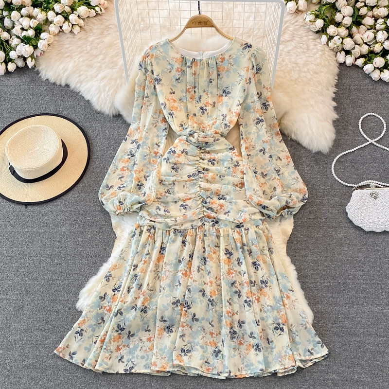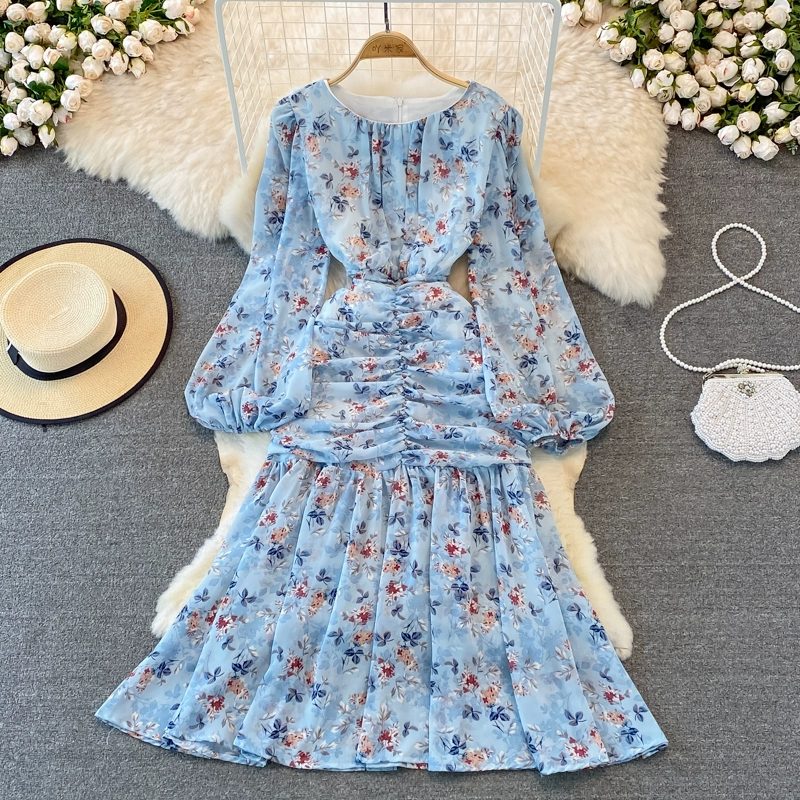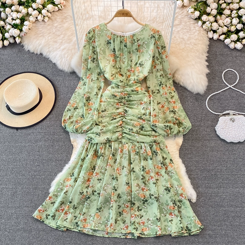 | nameOriginal | Round neck dress puff sleeves chiffon socialite fishtail |